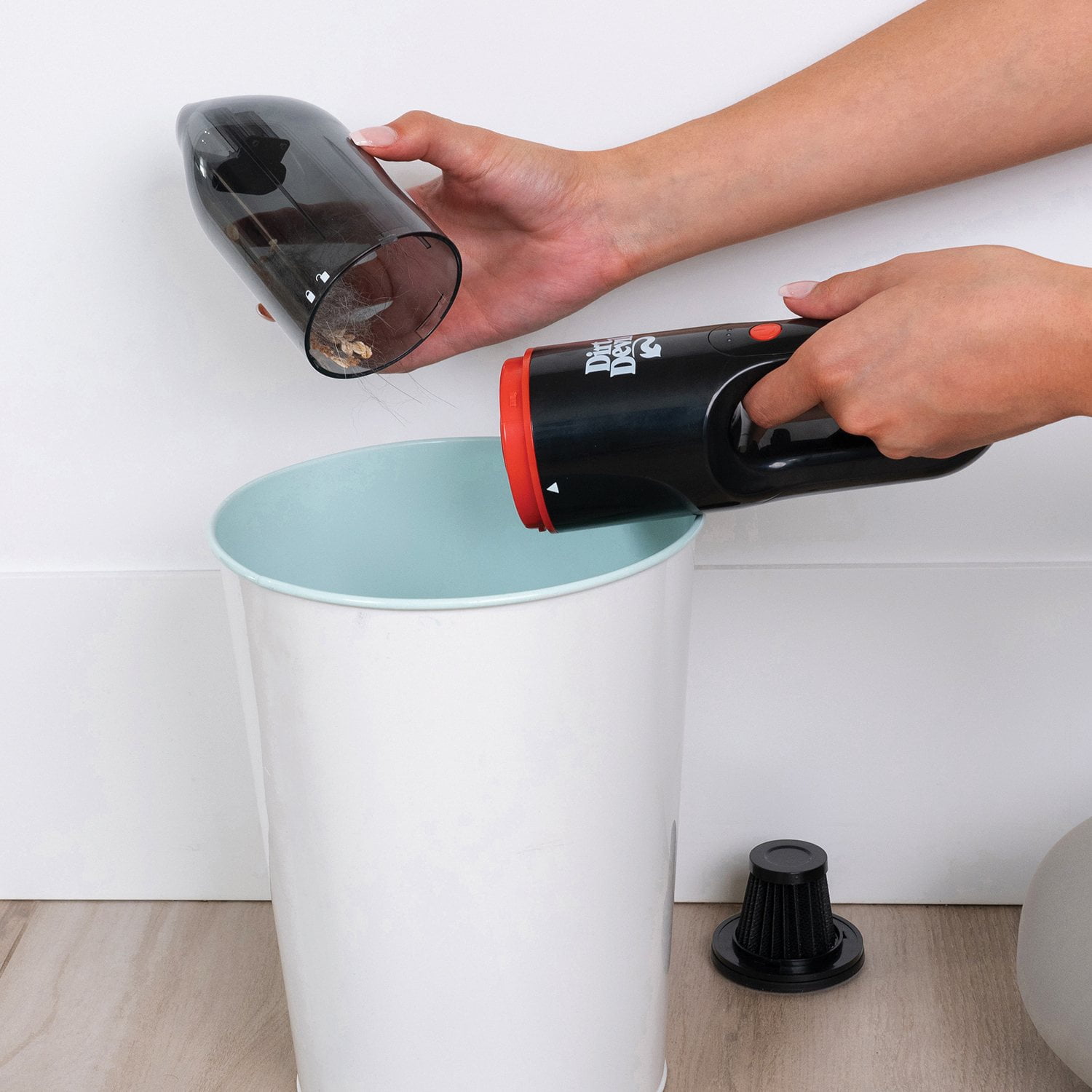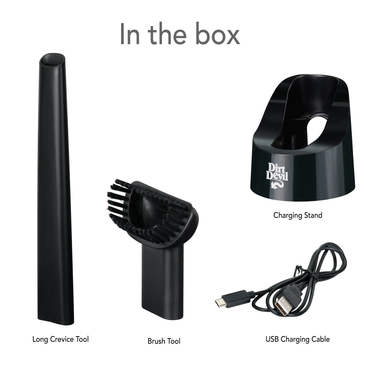 Tackle everyday messes quickly with the Dirt Devil Cordless Handheld Vacuum. Lightweight and portable, this handheld vacuum delivers strong suction to remove dirt, dust, crumbs, pet hair, and debris from a variety of surfaces. Its cordless, rechargeable design makes it easy to clean anywhere in your home, car, dorm room, RV, or office—without the hassle of a cord.