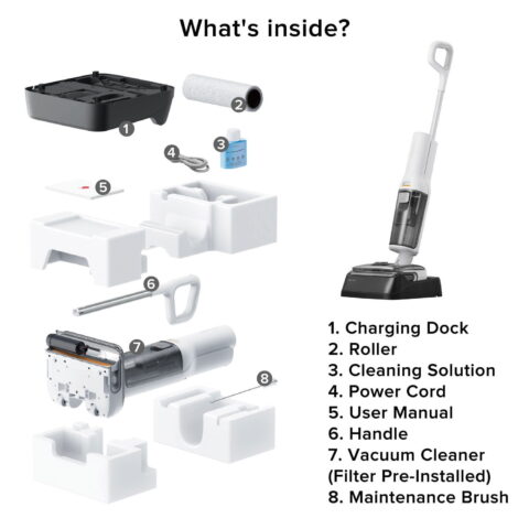 Equipped with 20000Pa suction power and a robust 450 RPM spin mop, this cleaner removes dirt, spills, crumbs, and grime with ease. Say goodbye to kneeling or scrubbing—this device handles it all for you.