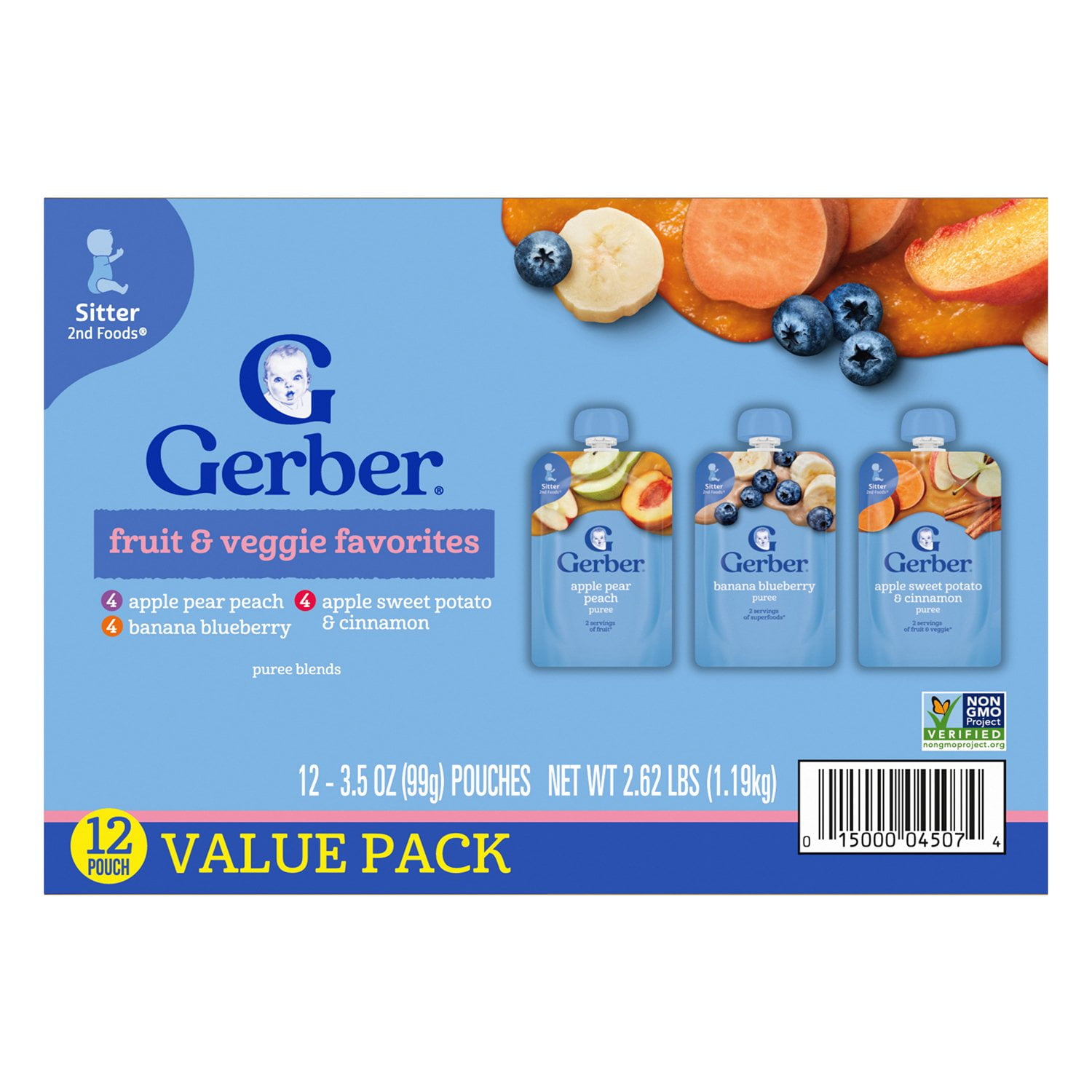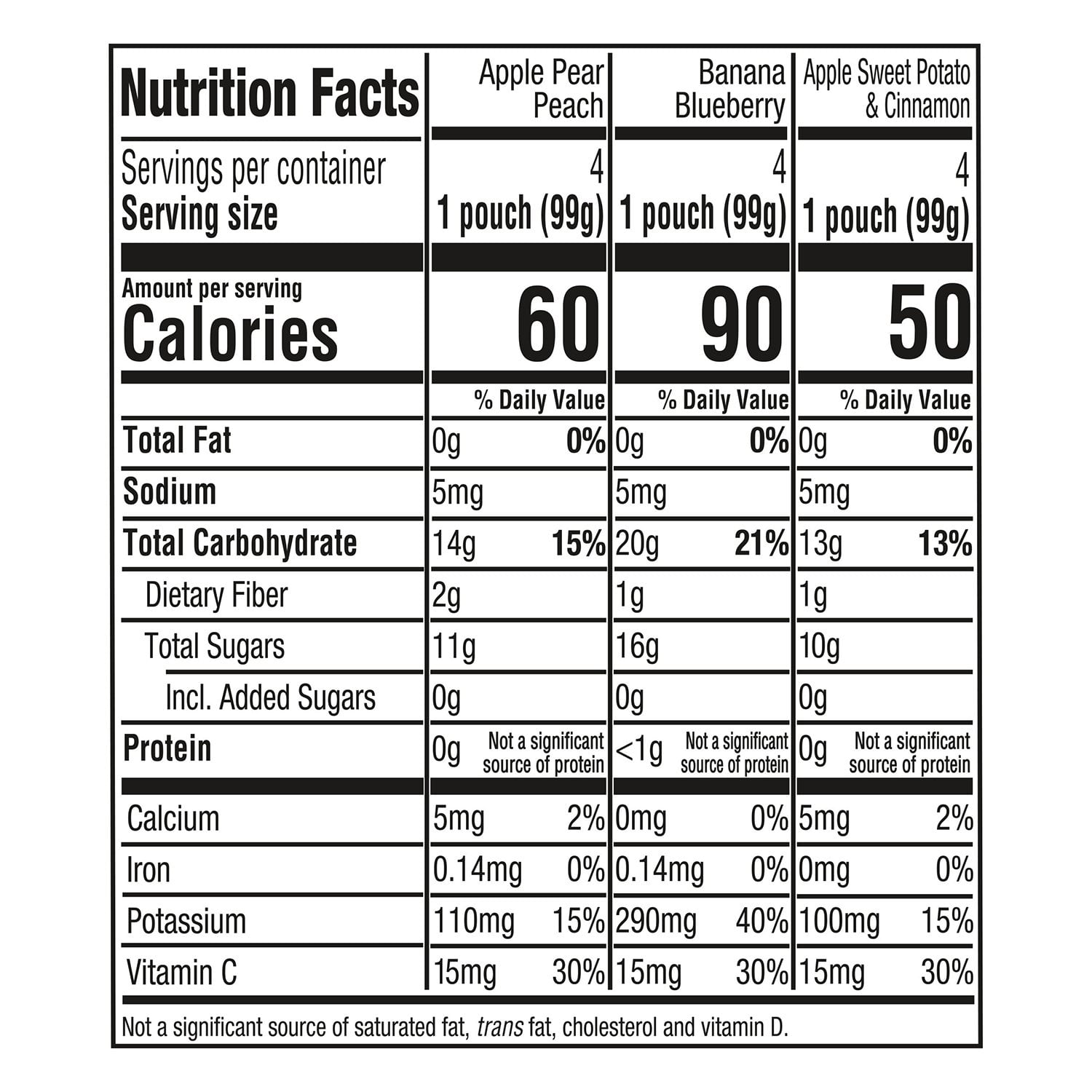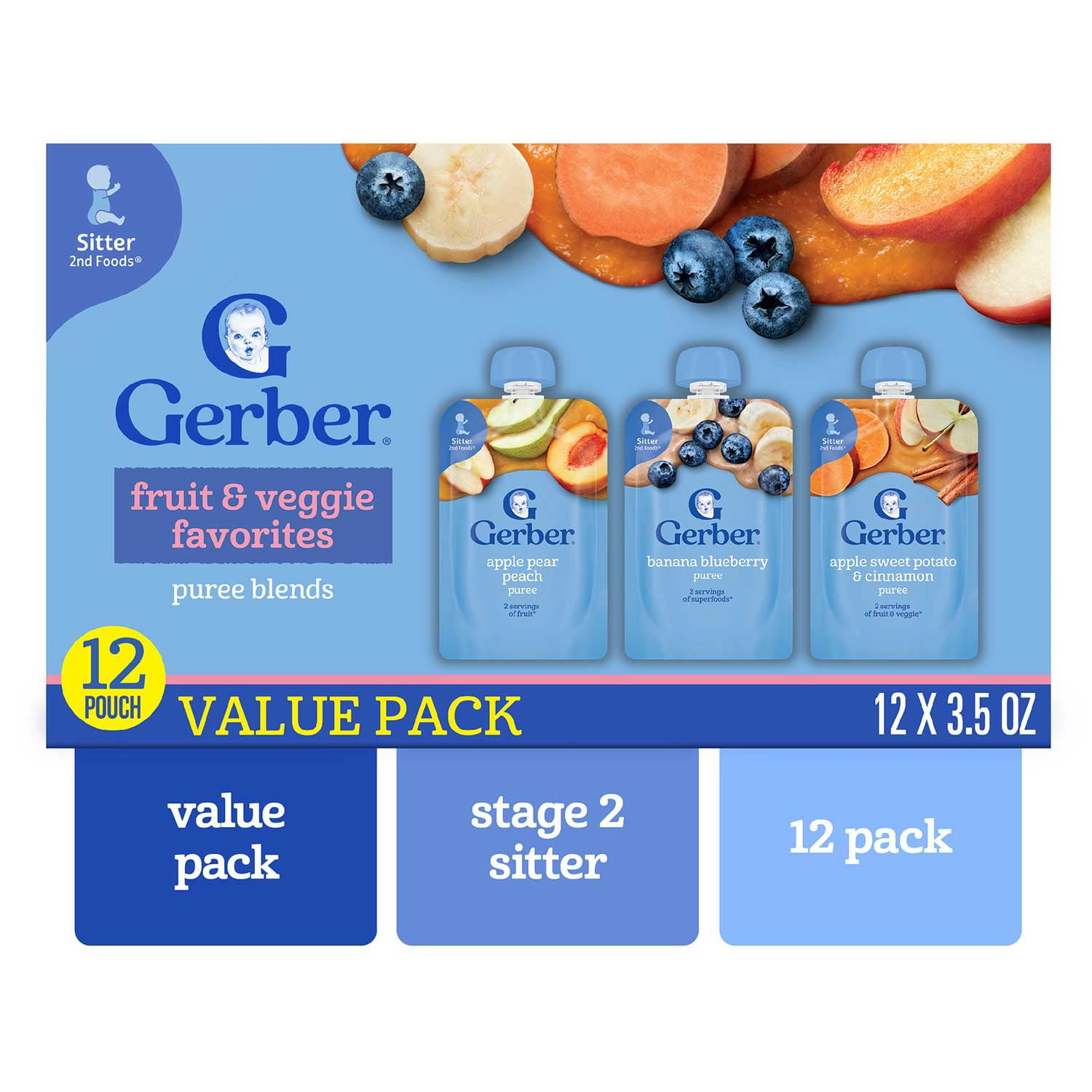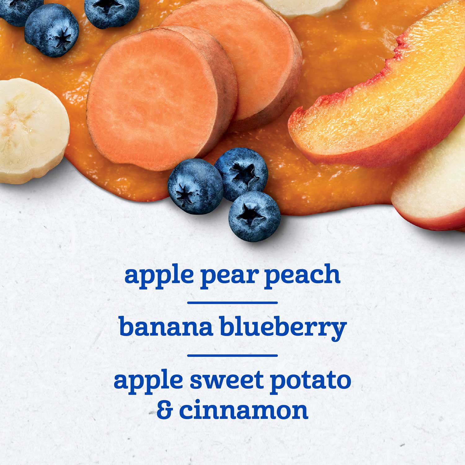 The flavor combinations–Banana Blueberry, Apple Pear Peach, and Apple Sweet Potato with Cinnamon–help expose babies to a variety of tastes and ingredient combinations, which helps your growing child develop a taste for new flavors. Gerber Toddler Pouches are made with fruits that meet Gerber’s high quality standards and have the perfect texture for your little one. Plus, they’re non-GMO certified, unsweetened, and have no added starch, artificial flavors or colors.