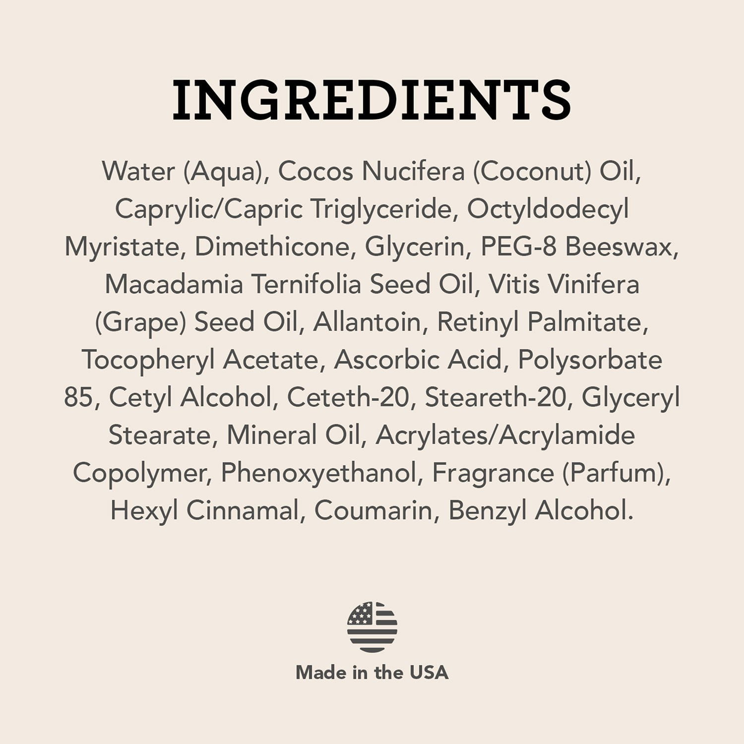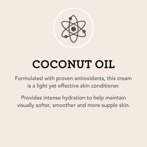 • Coconut-scented cream formulated with vitamins A, C, & E and proven antioxidants