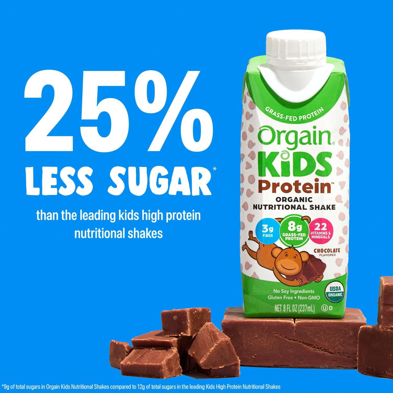 Orgain’s Kids Organic Nutritional Shakes are designed to give your children the delicious taste they crave with the nutrition they need. Each shake contains 8 grams of Organic grass-fed milk protein, 22 vitamins and minerals, and no artificial colors, flavors, preservatives, or sweeteners. The secret ingredient? Our SuperGrow Protein, a unique organic, complete protein that contains all nine essential amino acids.