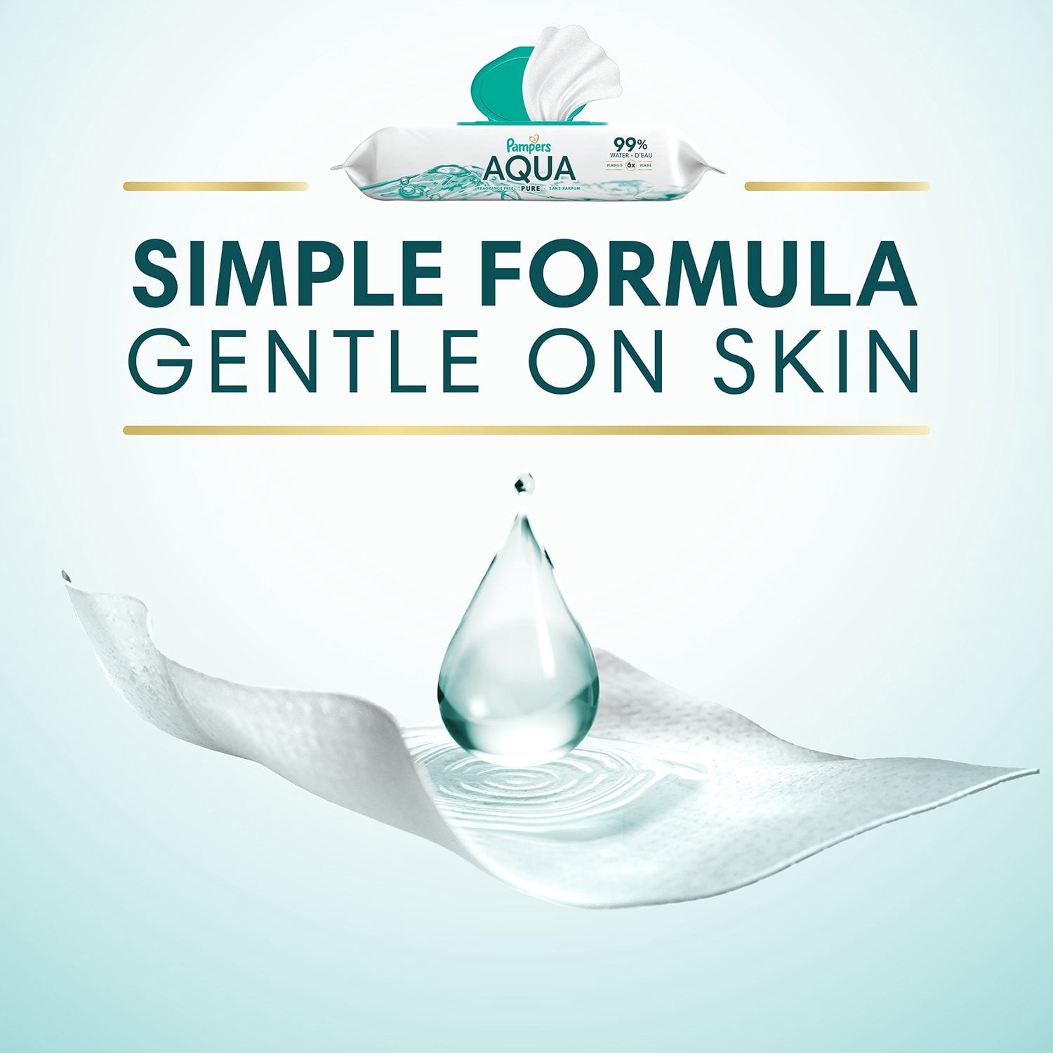 Aqua Pure wipes help support healthy baby skin because they contain pH balancing ingredients to help protect baby’s delicate skin. Pampers Aqua Pure wipes are proven to help restore skin’s healthy pH better than the leading super-premium baby wipe. Plus, each pack includes our convenient 1-Wipe POP TOP, which keeps wipes from drying out and is designed to dispense one wipe at a time.