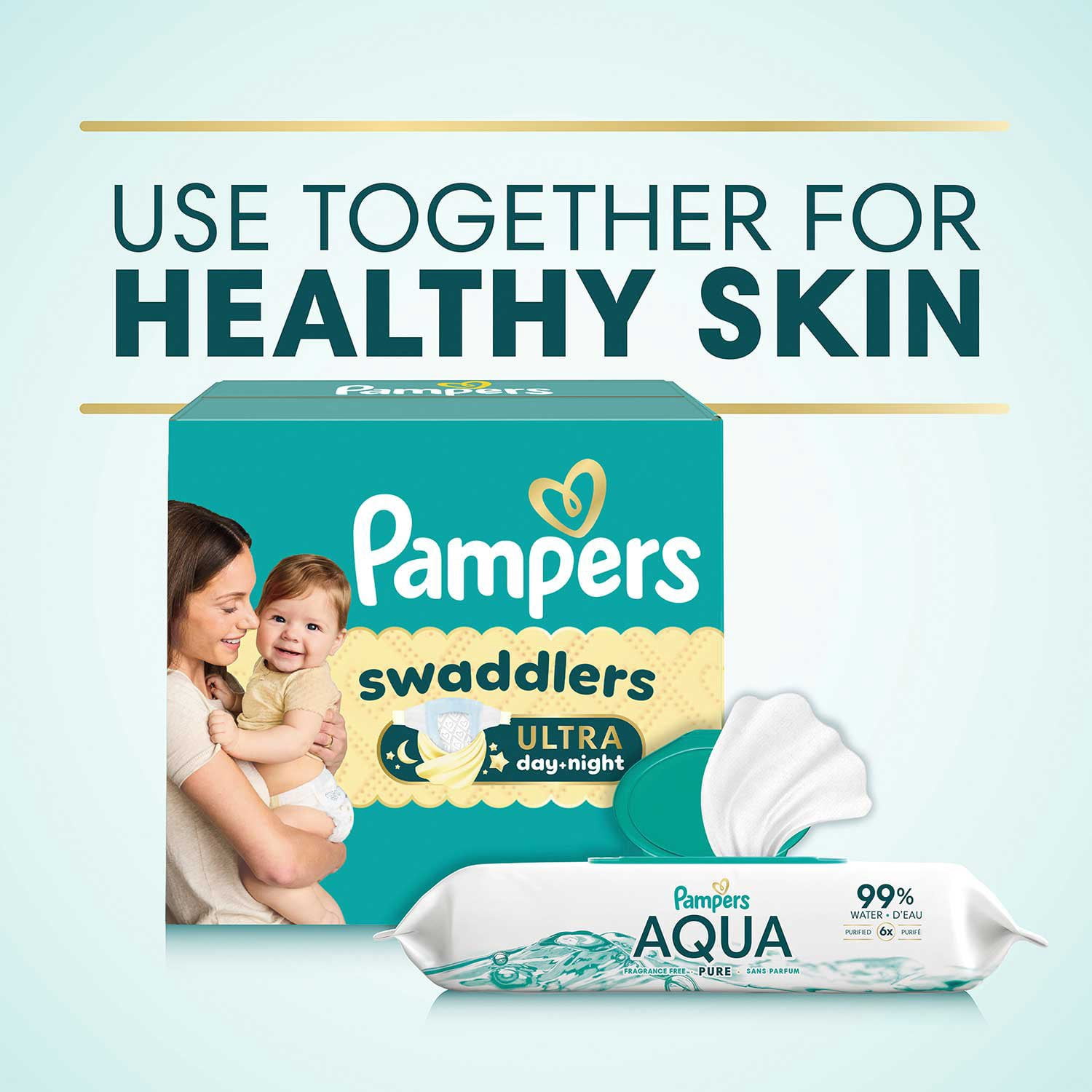Aqua Pure water wipes are from Pampers, the #1 pediatrician recommended brand. For purely healthy skin, use Pampers Aqua Pure wipes together with Pampers Pure Protection diapers.