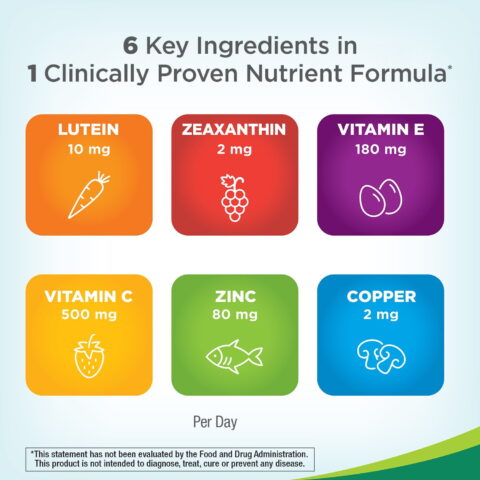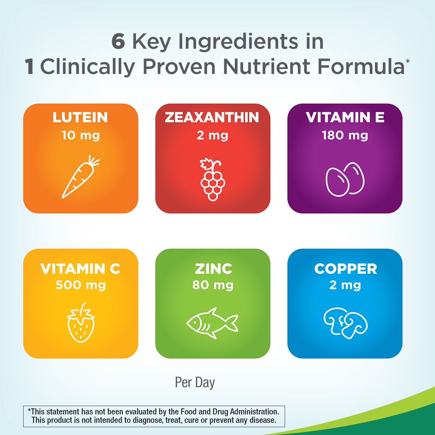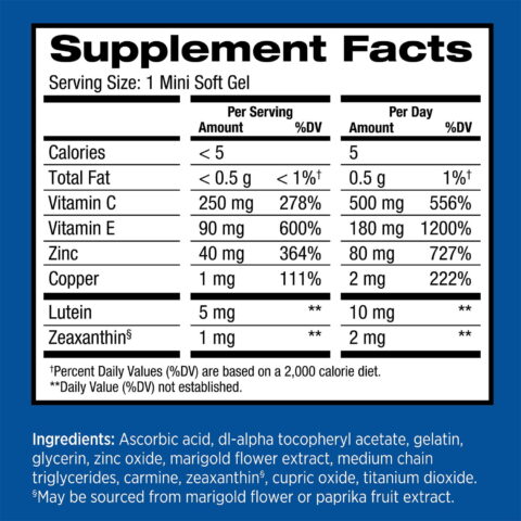 • Contains lutein, zeaxanthin, vitamin E, vitamin C, zinc, & copper