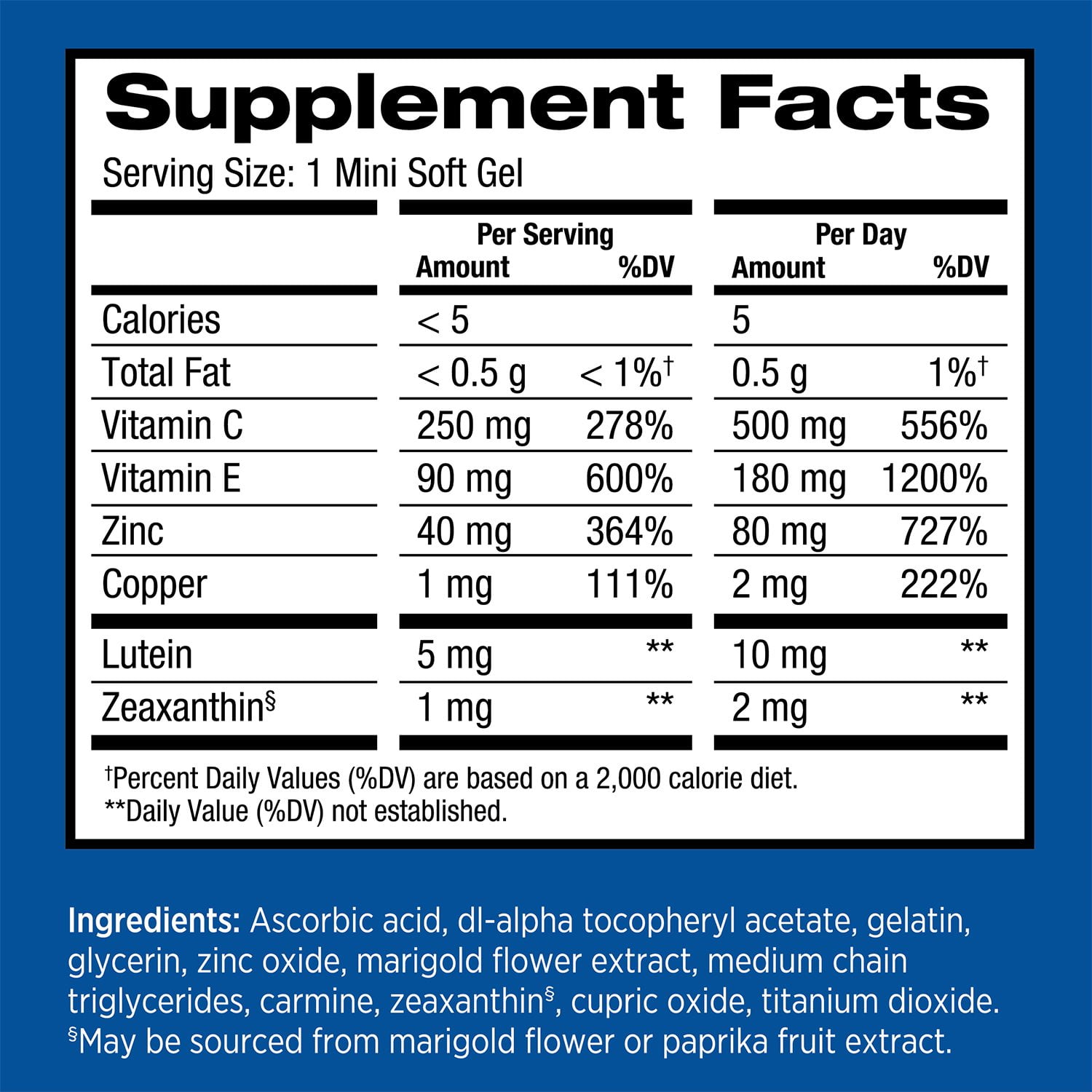 • One 210 count bottle of eye vitamin and mineral mini softgels