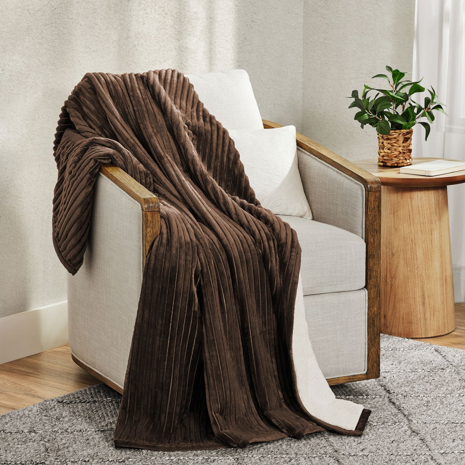 Experience the perfect blend of elegance and coziness with the Member’s Mark Ribbed Throw, crafted from 50% recycled polyester. This throw features patented Velvet Plush reversing to super soft faux fur, offering a tactile luxury that enhances any living space. The ribbed velvet plush side adds a textured allure, making it a stylish addition to your decor.