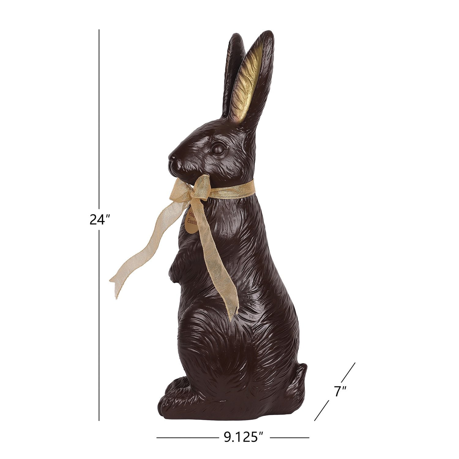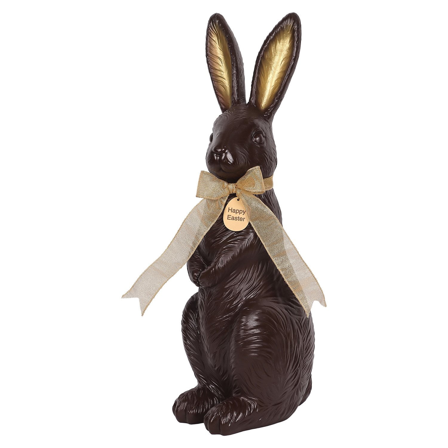 • Festive Easter 24″ chocolate bunny décor tied with a graceful gold ribbon