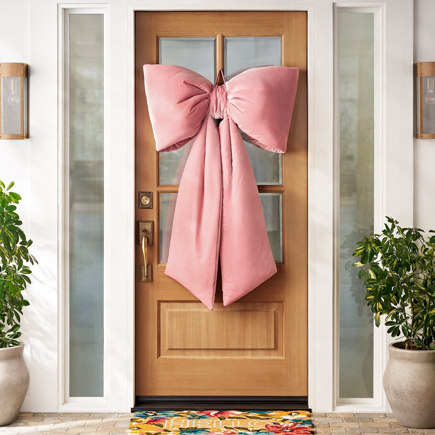 Measuring 32 inches wide by 46 inches tall, this oversized bow is ideal for larger decorating projects. Use it to adorn oversized wreaths, frame entryways, accent holiday trees, or add charm to event backdrops. Its timeless blush tone effortlessly complements a variety of seasonal themes, including winter holidays, weddings, and special celebrations.
