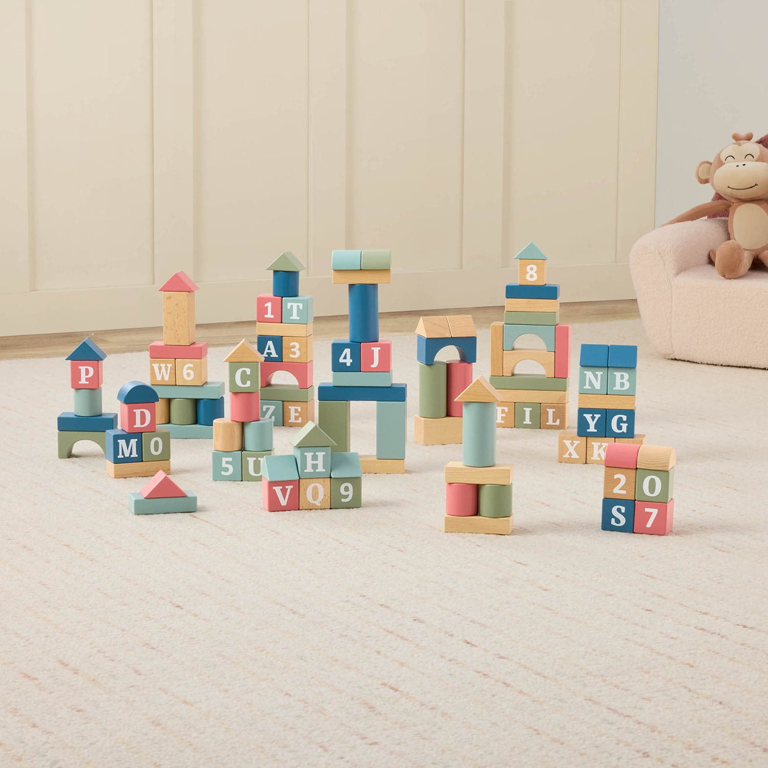 These 100 building blocks are crafted from solid wood, ensuring long-lasting durability and quality. Their sturdy design makes them perfect for endless hours of creative play and construction.