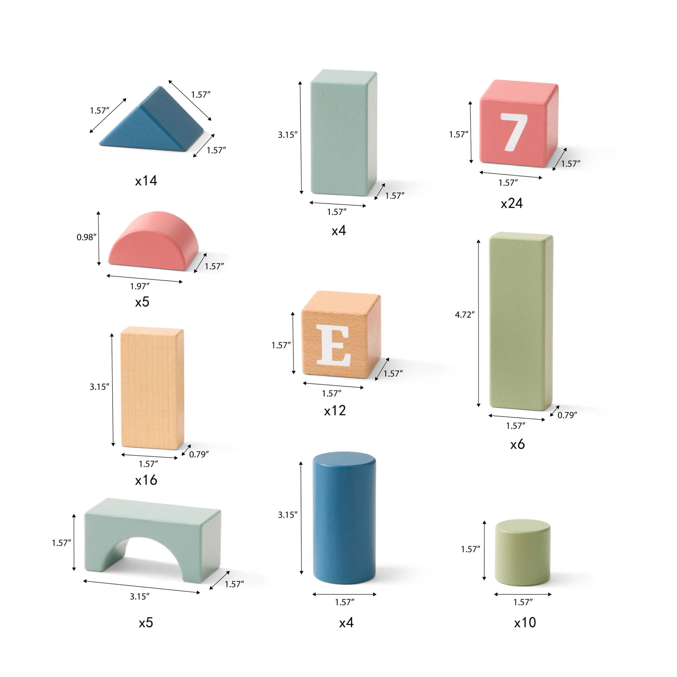 Each block is designed with rounded edges and a smooth surface to enhance safety during use. When combined with larger components, they meet strict safety standards, reducing the risk of suffocation.