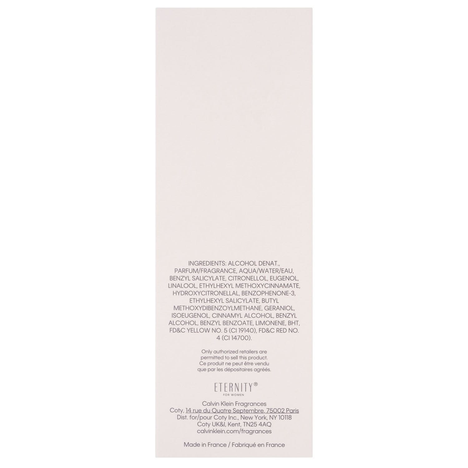 Experience the luxury and romance of Calvin Klein Eternity for Her Eau de Parfum. This contemporary floral fragrance is inspired by modern love and intimacy, embodying the ideals of timeless elegance and enduring passion. The scent is a perfect blend of sophistication and romance, making it a great choice for any woman who values these qualities.