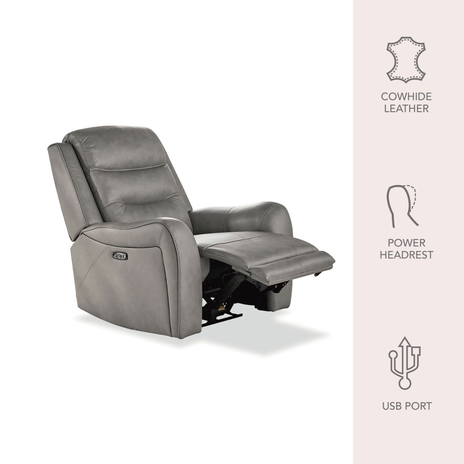 The Cooper also features a built-in USB and USB-C port, allowing you to charge your electronic devices while you enjoy the plush comfort of your recliner. Stay connected and powered up without leaving your seat.