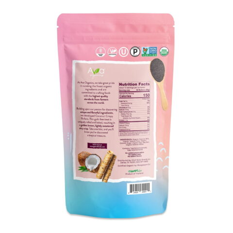 Ava Organics believes that organic ingredients can be flavorful, satisfying, and inspiring – just as nature intended. Our Coconut Crispy Rollers are a slightly sweet, subtly nutty, and naturally delicious guilt-free snack with a crave-able crunch. They are baked to a golden brown, airy crisp, offering a unique blend of tastes and textures.
