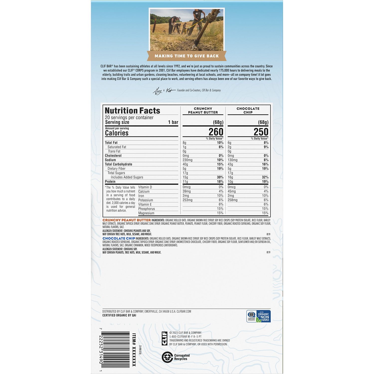 CLIF BAR® energy bars have been powering athletes and adventurers for over 25 years. Born from a 175-mile bike ride and crafted with nutritious, sustainable ingredients, CLIF BAR is the ultimate performance energy bar. It delivers an optimal blend of plant-based protein, fat, fiber, and carbohydrates to keep active bodies going. The bar also features a unique mix of fast-acting and longer-lasting carbohydrates from organic sugar and rolled oats, perfect for fueling up before or during activities.
