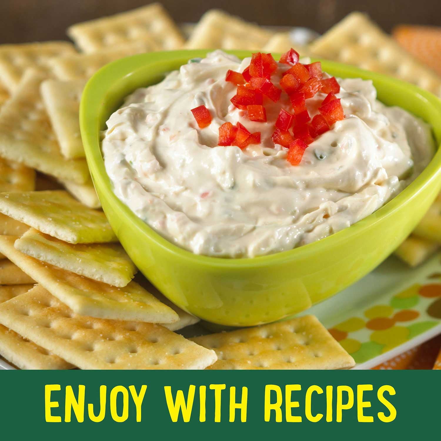 Although you can certainly enjoy them plain, these crackers taste fantastic with a variety of different sauces, dips, and meats. Pair these Club crackers with fruit or salad or add them to a plate of cheese and meat to create an elaborate charcuterie board. Additionally, many people enjoy dunking their salty crackers into hot chocolate sauce, which offers a unique yet satisfying combination of flavors.