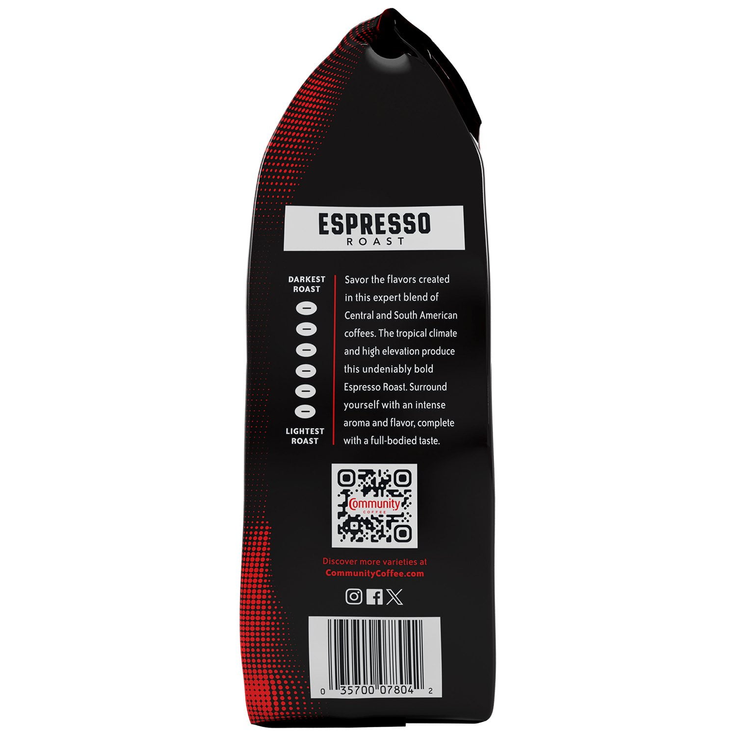 Immerse yourself in the rich, bold flavors of this expertly crafted blend of Central and South American coffees. Grown in tropical climates and high elevations, this Espresso Roast is undeniably robust and full-bodied.