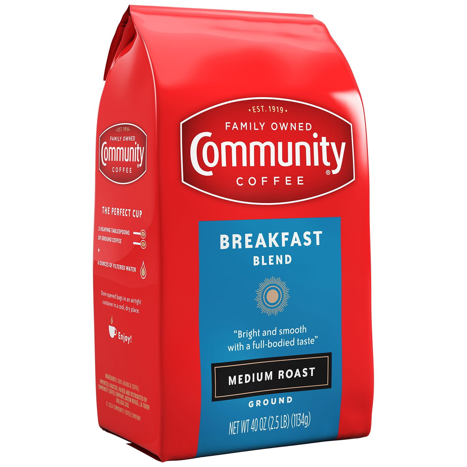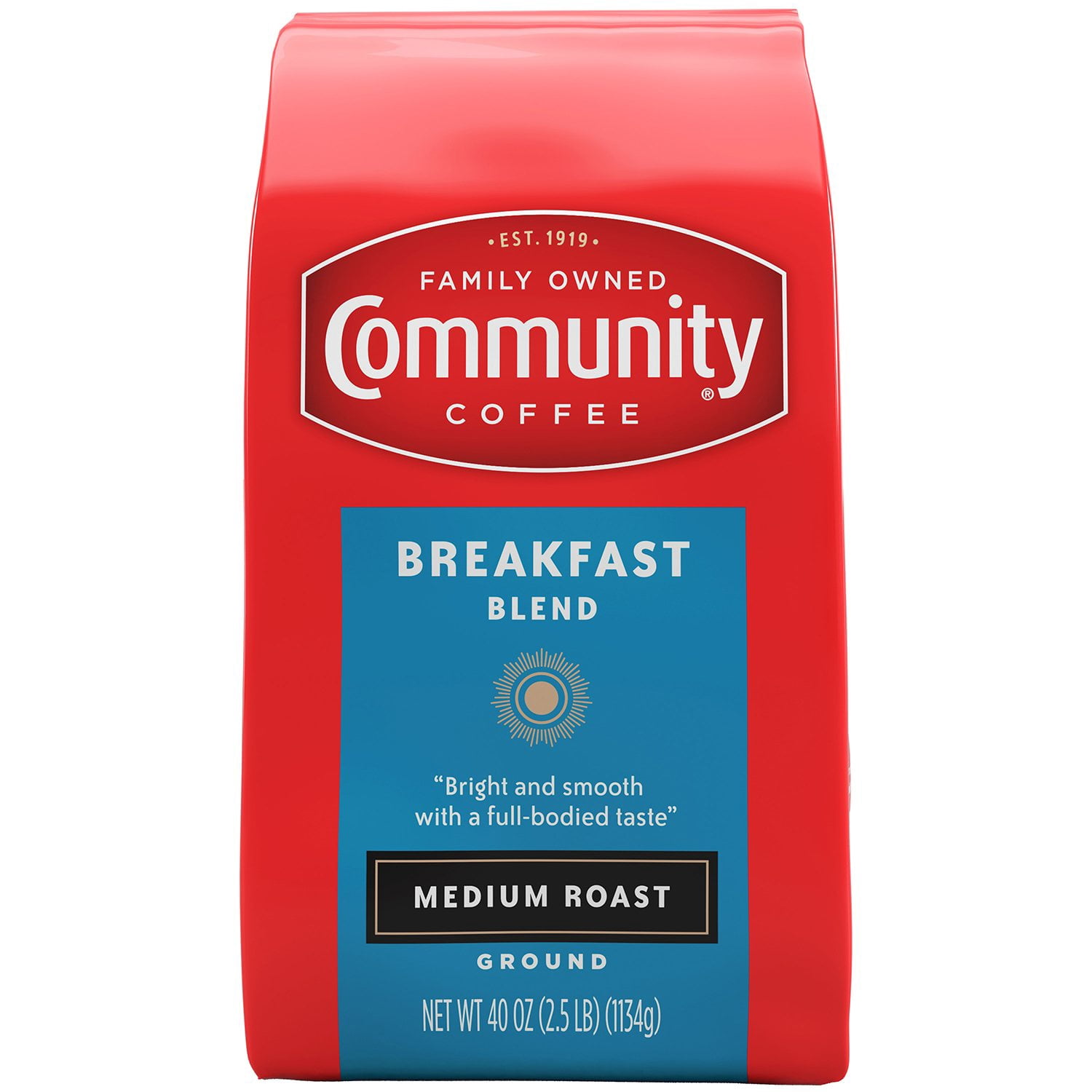 Community Coffee Medium Roast Ground Coffee, Breakfast Blend, 40 oz.