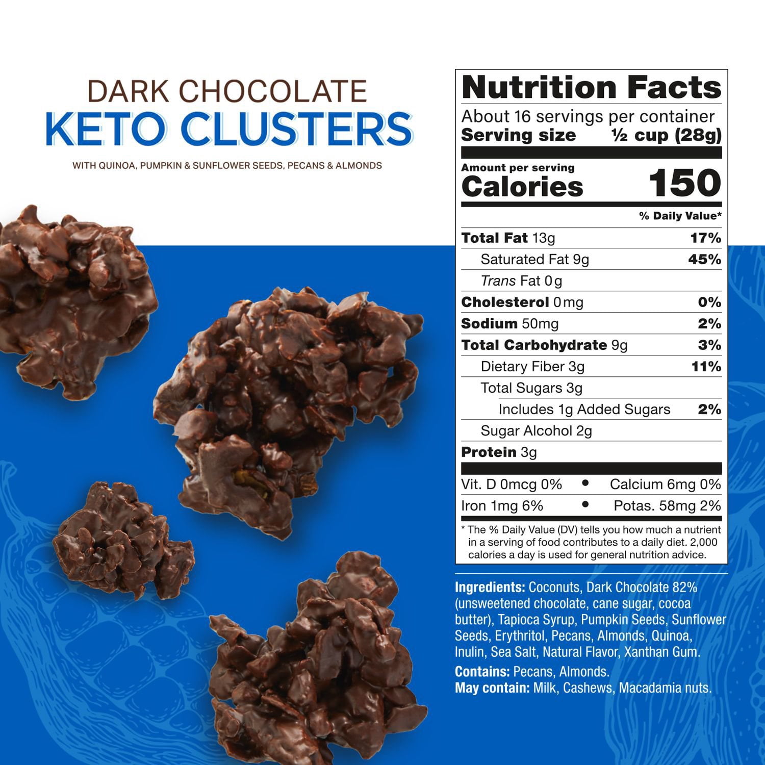 Experience the delightful taste of Gourmet Gatherings Dark Chocolate Keto Clusters. This delightful treat is perfect for any time of the day. The clusters are gluten-free and contain no artificial colors or flavors, so you can feel good about indulging. Each serving contains 4g of net carbs and just 3g of sugar, making this a guilt-free snack option. You’ll surely fall in love with this wholesome and satisfying treat.