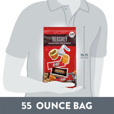 • Contains one (1) 55-ounce, 220-piece bulk variety bag of Hershey Miniatures Assorted Flavored Candy