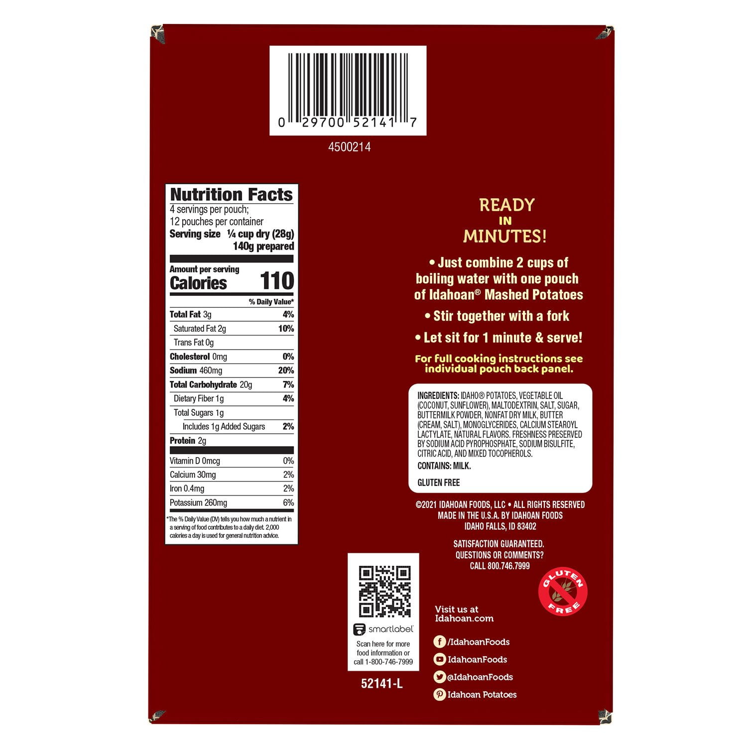 Preparing Idahoan Buttery Homestyle Mashed Potatoes is as simple as heating water on the stovetop or in a microwave, adding the entire pouch of mashed potatoes, and voilà! You have a delicious side dish ready in minutes. Each order includes eight 4-ounce packets, each yielding 4 half-cup servings, making it a convenient choice for quick meals.