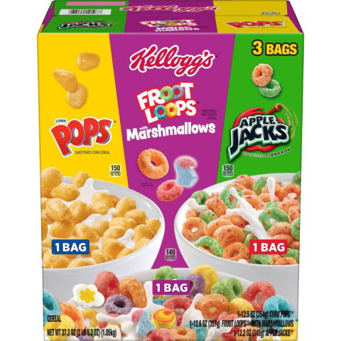 Kellogg’s Breakfast Cereal, Variety Pack, 37.3oz (3 Bags). A sweet, crispy, crunchy way to start your day, Kellogg’s cereals make for a deliciousy cold part of breakfast any morning of the week.