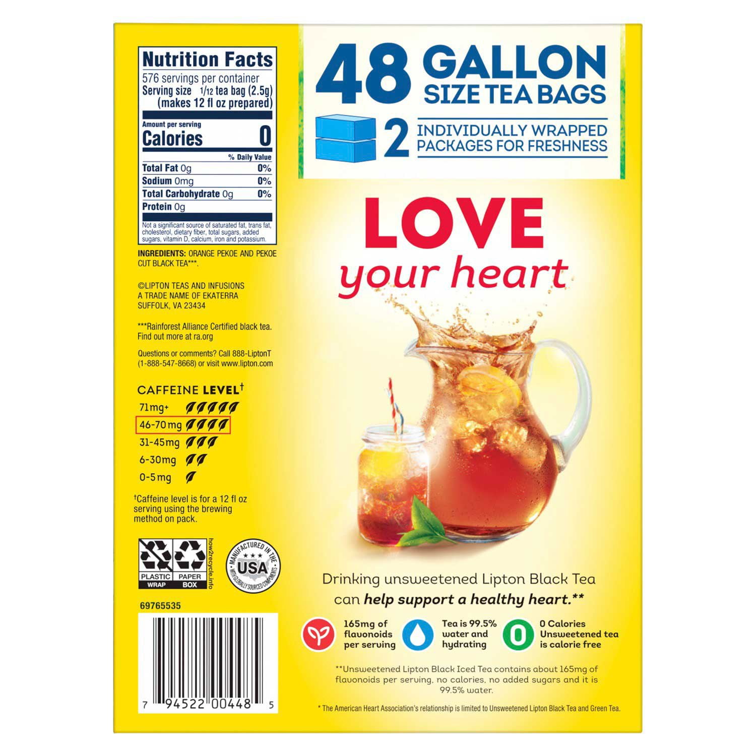 Lipton’s ice tea bags are designed to bring you refreshing tea any time of the year. Each tea bag is specially crafted to make one whole gallon of tea, ensuring there’s plenty to share with family, friends, and even unexpected guests.