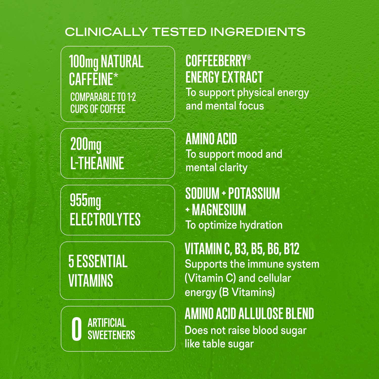 This innovative blend includes L-Theanine and CognatiQ, ingredients known to support focus and mood. With just 100mg of natural caffeine sourced from coffeeberry energy extract, it provides a gentle and balanced energy boost without the jitters.
