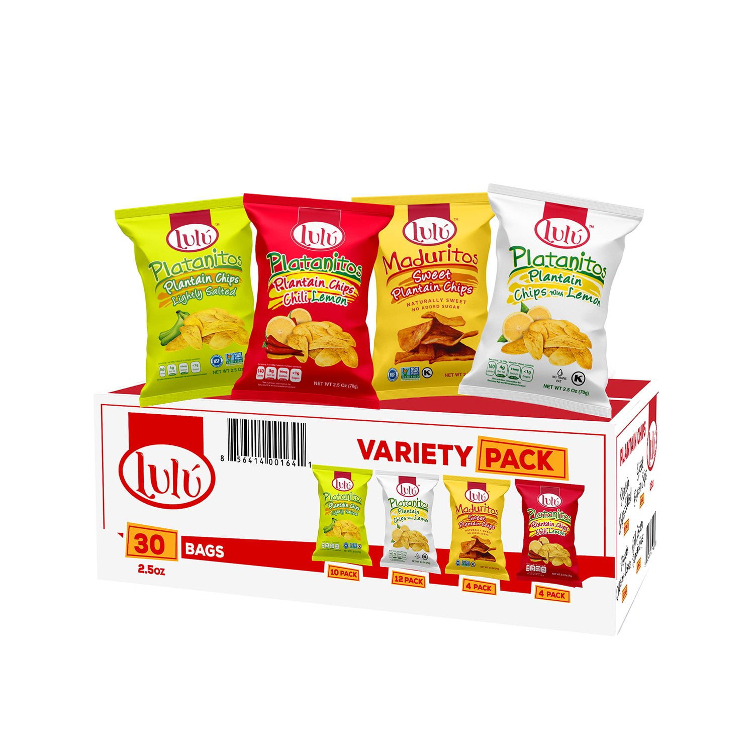 The Lulu Variety Box brings together the top-selling flavors from Lulu. It includes 12 bags of tangy Lemon, 10 bags of classic Salted, 4 bags of spicy Chili Lemon, and 4 bags of sweet Maduritos. If you’re having trouble choosing a favorite, this variety box lets you sample them all.