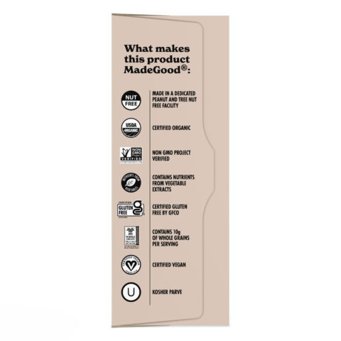 MadeGood is the perfect snack for any time of day. MadeGood is a delicious wholesome treat for the entire family. Ear bar is organic certified, non-GMO verified, nut-free, gluten-free, and contains six different fruits and vegetables. Everything you love about a good granola bar and more. Chewy and flavorful, loads of great taste combinations, perfect for breakfast, lunch, or a quick snack. Healthy, nutritious, delicious and vegan.