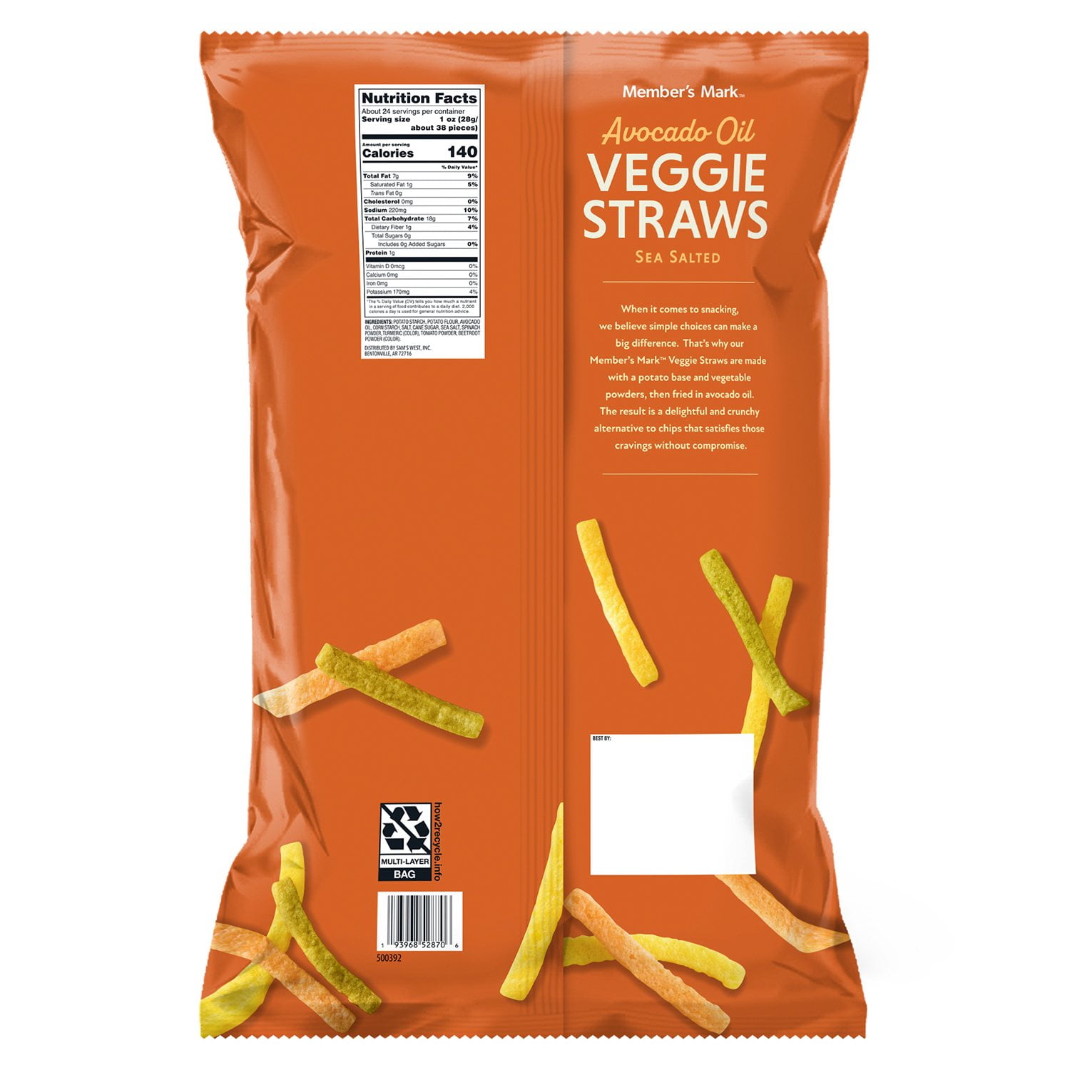 Member’s Mark Avocado Oil Veggie Straw Sea Salt, 23.5 oz.