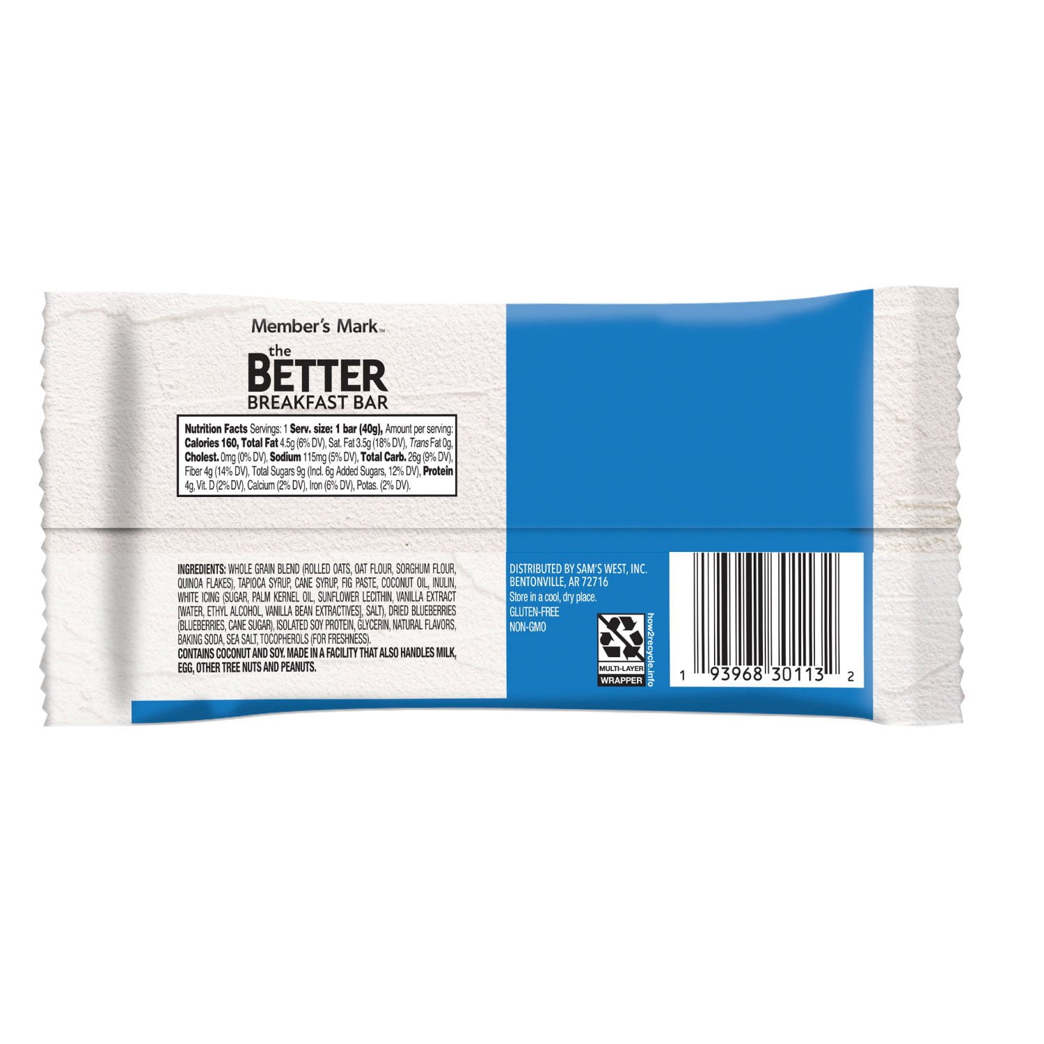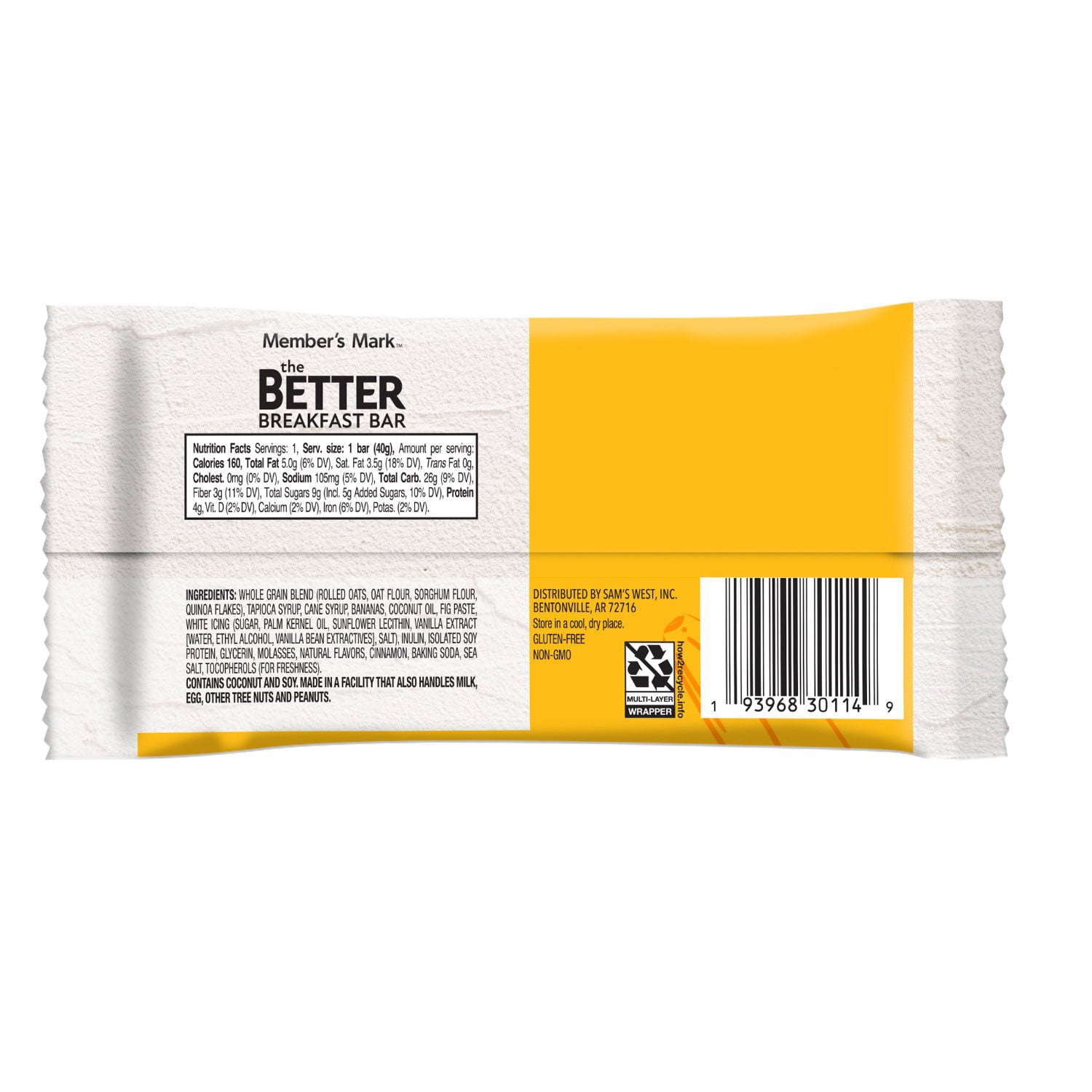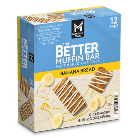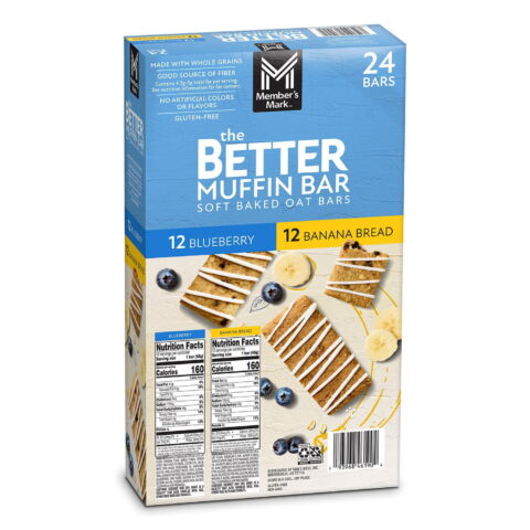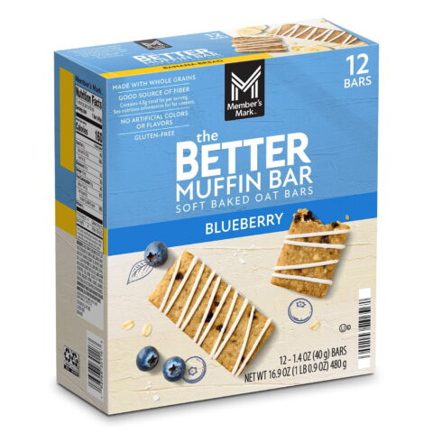 Exclusively available at Sam’s Club, the Member’s Mark The Better Muffin Bar is a soft baked oat bar that delivers the delightful taste and texture of your favorite muffin. Crafted with a blend of whole grains and filled with real fruit pieces, this bar is free from artificial colors or flavors. Made entirely with non-GMO ingredients, it offers a good source of fiber and is gluten-free.