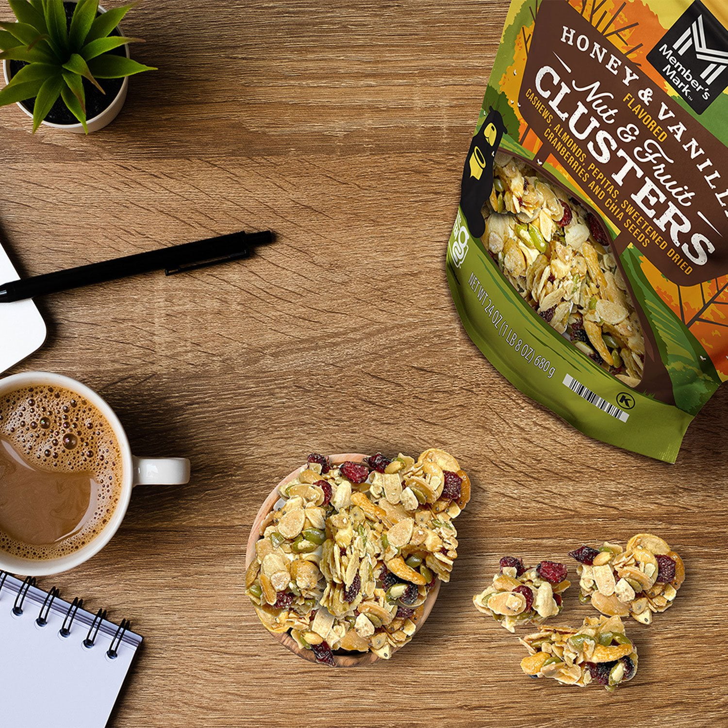 Indulge in the perfect combination of cashews, almonds, pepitas, sweetened dried cranberries and chia seeds that live in perfect harmony in our Member’s Mark Nut and Fruit Clusters. With each bite, you’ll experience a textural triumph of crunch and chew that’s impossible to resist.