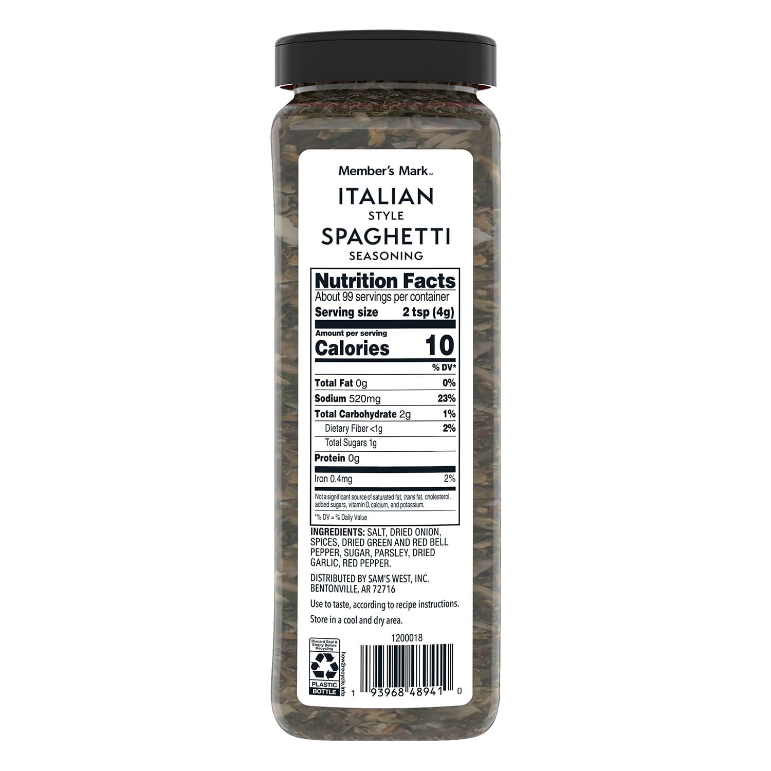 Member’s Mark Italian Spaghetti Seasoning blend combines the perfect mix of onion, garlic, red and green bell peppers, parsley, salt, sugar, and red pepper. While it’s named for spaghetti, this versatile blend is ideal for enhancing a variety of dishes. From classic Italian meals to everyday recipes, this seasoning is a pantry essential.
