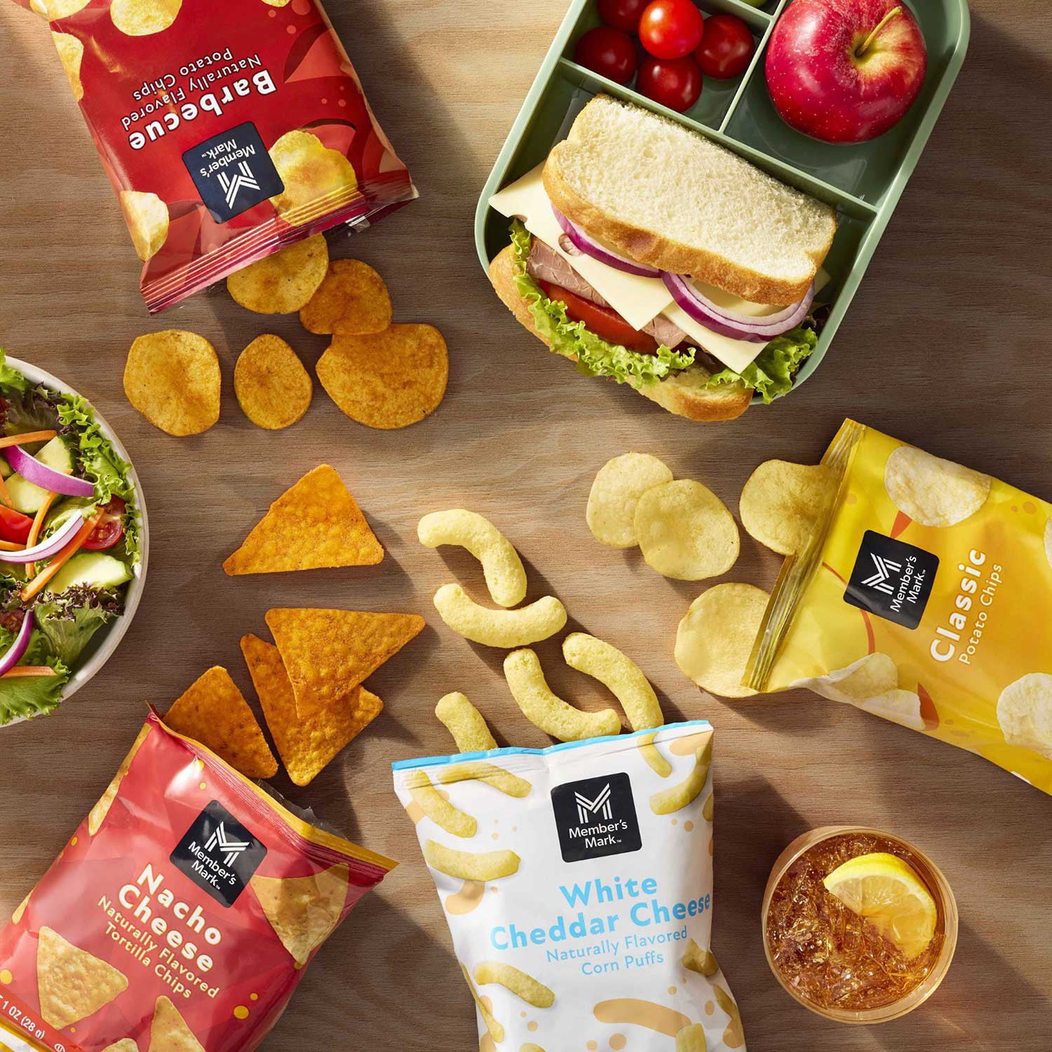 Member’s Mark 42 count Member’s Mix Variety Pack offers the perfect crunch and the right amount of flavor that will keep you coming back for more. The pack includes (6) 1-oz bags of Member’s Mark Classic Flavored Potato Chips, (6) 1-oz bags of Member’s Mark Barbecue Flavored Potato Chips, (6) 1-oz Bags of Member’s Mark Cheddar & Sour Cream Flavored Chips, (6) Member’s Mark White Cheddar Puffs, (9) Member’s Mark Cheese Crunch, and (9) Member’s Mark Nacho Tortilla . This variety pack is the perfect lunch box companion, ensuring a delightful snack experience every time.