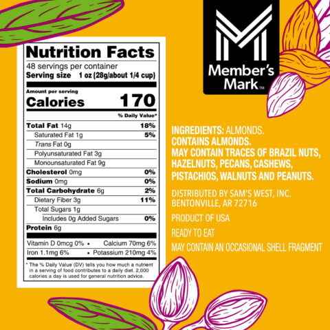 Member’s Mark Natural Whole Almonds provides a healthy snack and versatile ingredient to meals throughout the day. These crunchy almonds are an excellent source of nutrients and just happen to taste delicious, too.
