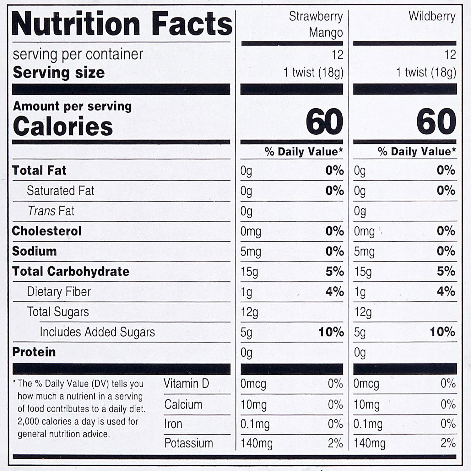 • 24 packs, 12 of each flavor: Wildberry and Strawberry Mango
