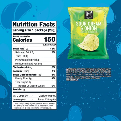 This Member’s Mark 42-count Potato Chips Variety Pack is packed with a variety of flavors. It includes (12) 1-oz bags of Member’s Mark Classic Flavored Potato Chips, (12) 1-oz bags of Member’s Mark Barbecue Flavored Potato Chips, (6) 1-oz bags of Member’s Mark Sour Cream & Onion Flavored Potato Chips, (6) 1-oz bags of Member’s Mark Ripple Cheddar & Sour Cream Flavored Chips, and (6) 1-oz bags of Member’s Mark Classic Wavy Potato Chips.