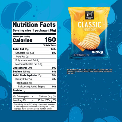 The Member’s Mark™ Potato Chip Variety Pack offers a delightful assortment of your favorite classic chips. Each bag is individually wrapped for grab-and-go convenience, perfect for snacking on the move. From picnics to parties, school lunches to sporting events, these small, ready-to-go bags are a convenient and delicious snack choice.