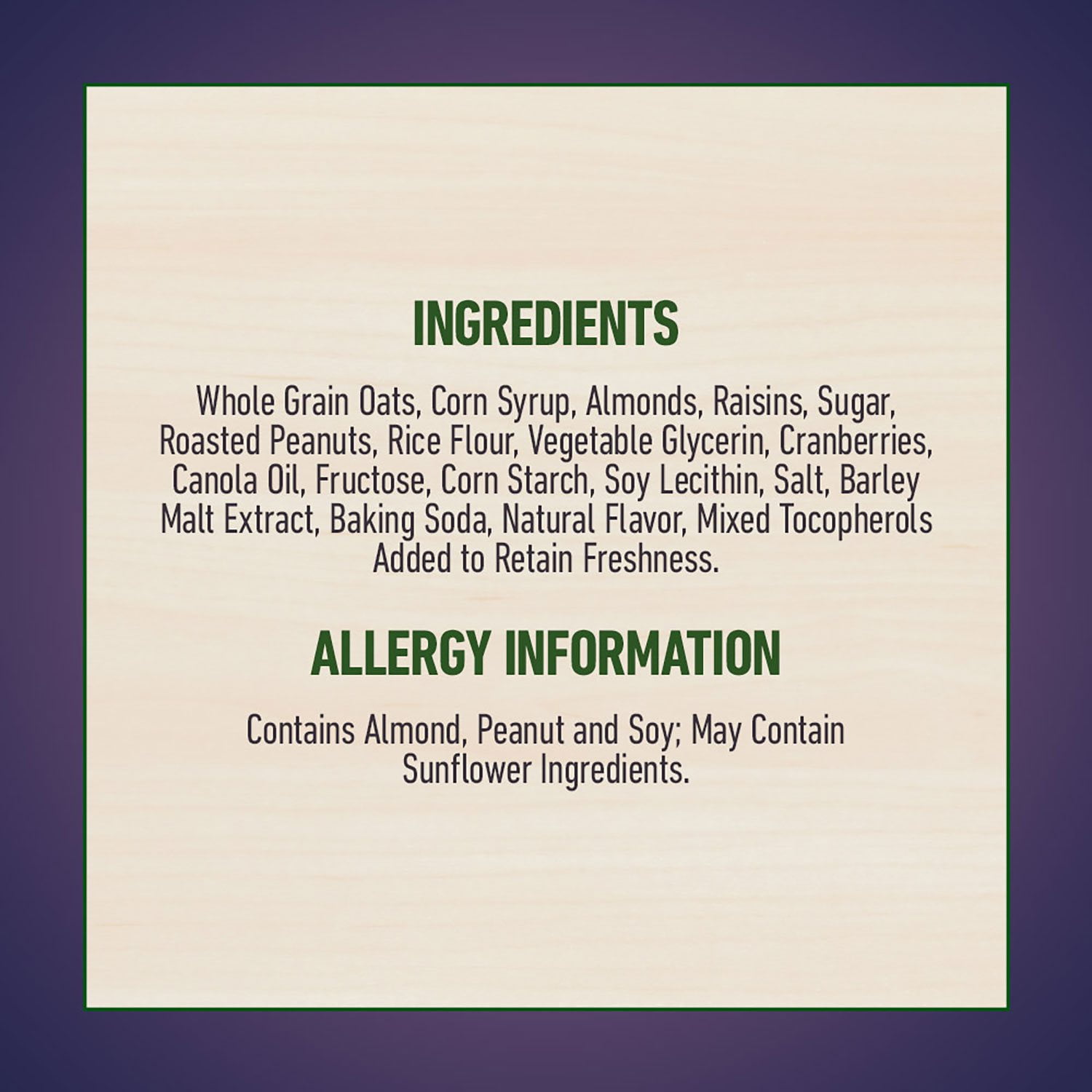 Nature Valley Trail Mix Bars are made with 100% whole-grain oats, providing you with 8 grams of whole grain energy per serving. Each bar contains an assortment of dried cranberries and raisins blended with three kinds of peanuts and seeds, creating a satisfyingly chewy and tasty treat. Best of all, these granola bars contain no artificial flavors, colors, or preservatives, so you can confidently serve these snacks to your friends and family.