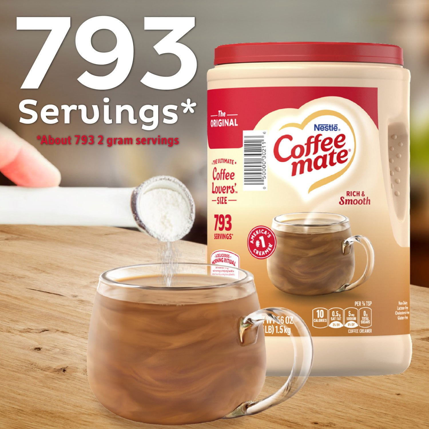 Transform the coffee you like into the coffee you love with Coffee mate The Original coffee creamer. It’s rich, smooth, and has a classic taste that is lactose-free, cholesterol-free, and gluten-free. With Coffee mate non-dairy coffee creamer, you can create your perfect cup of coffee every time.