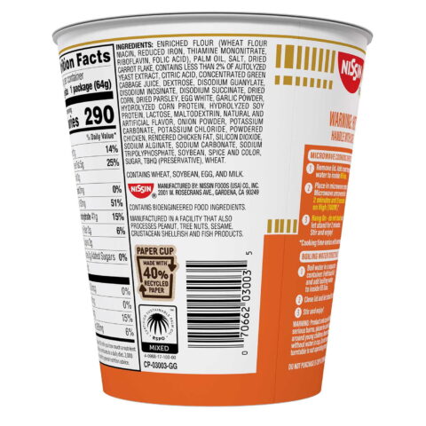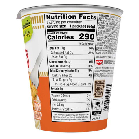 Indulge in the authentic taste of Nissin’s original Cup Noodles. Recognized as the best-tasting cup of ramen in blind taste tests, this new recipe maintains the same delicious flavor without any added MSG or artificial flavors. The sodium content is also kept below 50% of the daily value, making it a healthier choice for instant noodle lovers.