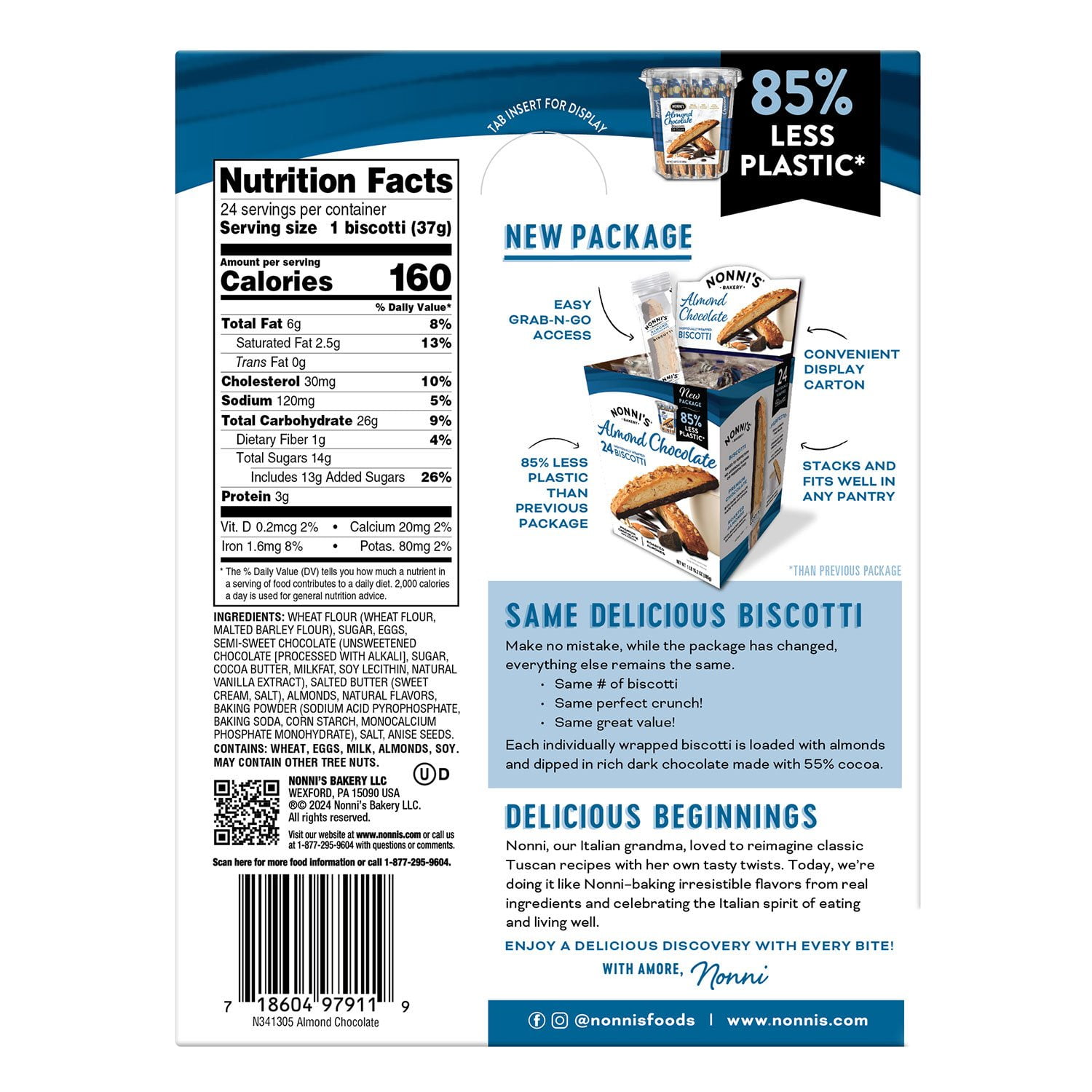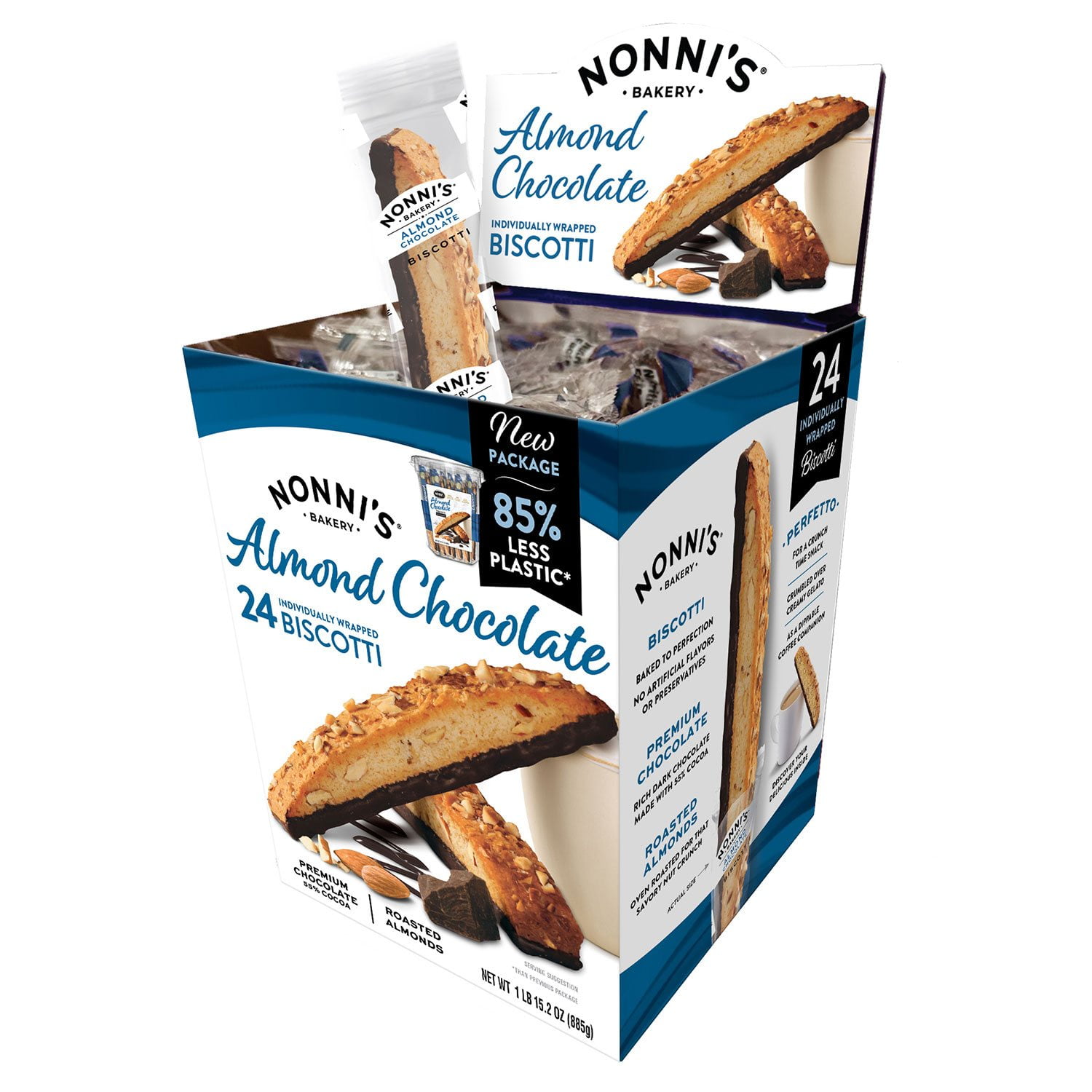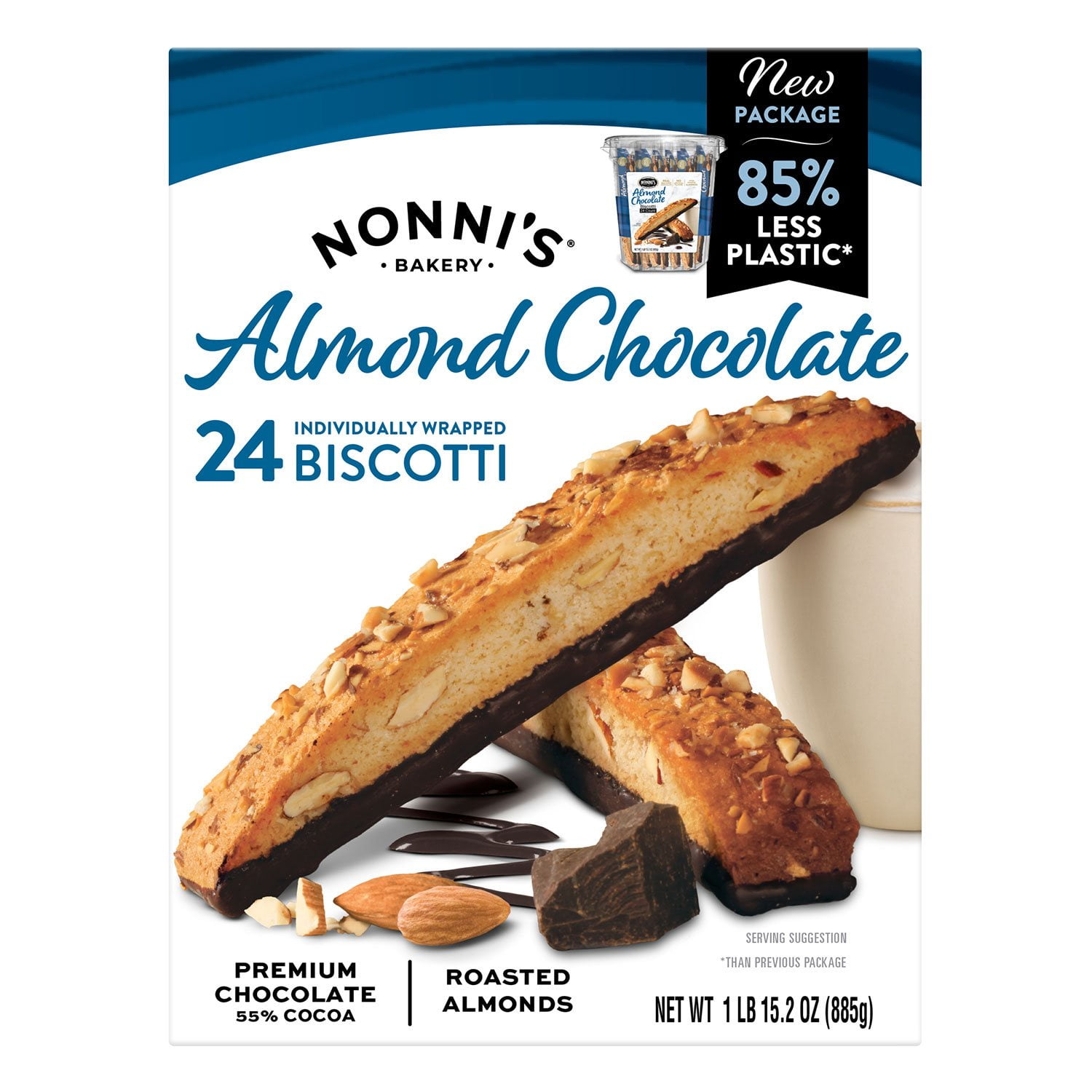Nonni’s Almond Chocolate Biscotti is a treat you can feel good about. The toasty, nutty flavor is sure to be a hit with your whole family. Enjoy it with your favorite dessert, as a movie snack, or take a few along with you on your day out. Since these cookies are made from the freshest ingredients and individually wrapped, you can always feel good about choosing Nonni’s Almond Chocolate Biscotti.