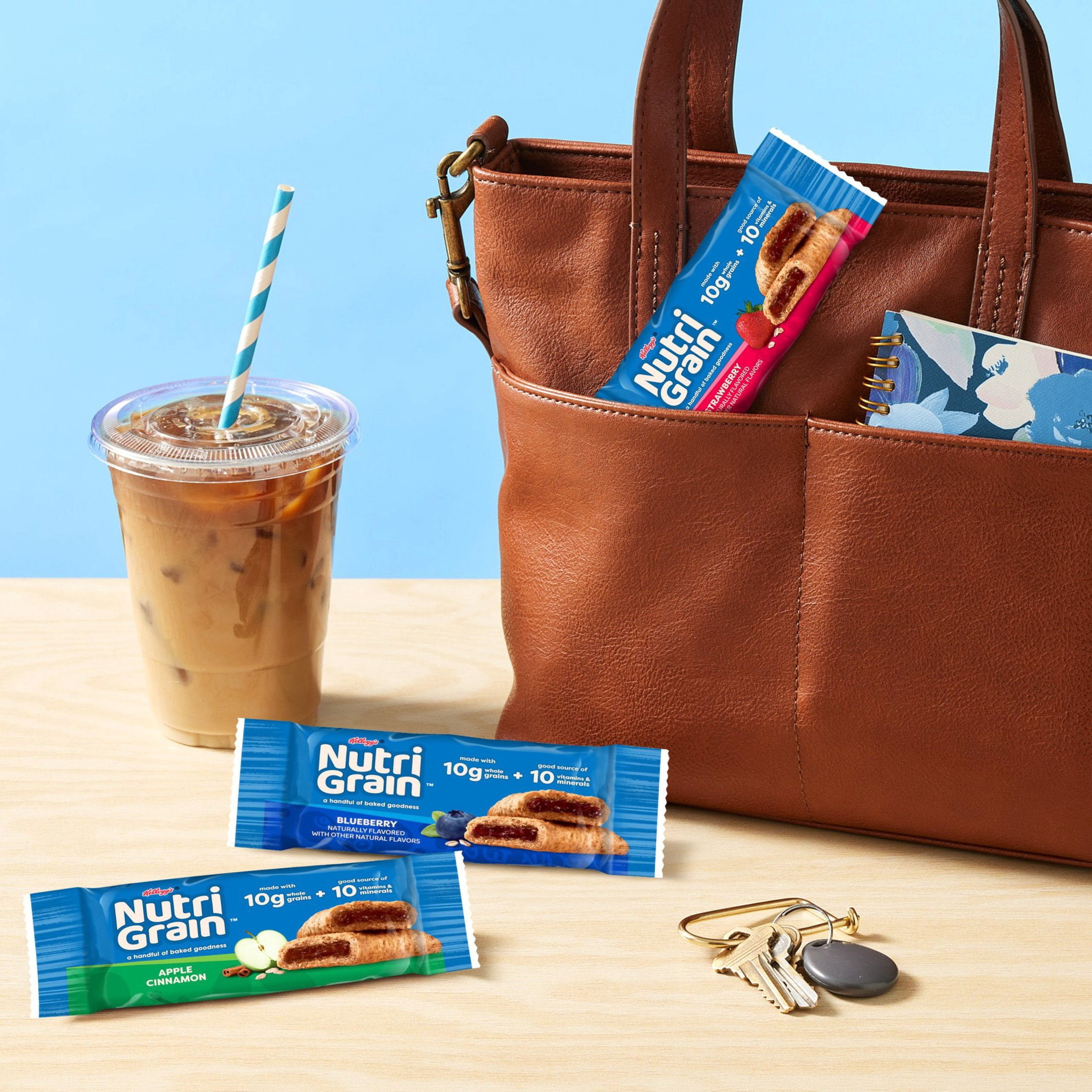 Nutri-Grain Bars Variety Pack (1.3 oz. bar, 36 ct.) provides 12 each of the Apple Cinnamon, Blueberry, and Strawberry flavors for a quick morning meal or mid-day snack. Enjoy a delicious Nutri-Grain bar with eight grams of whole grains, real fruit, and no high fructose corn syrup. Each bar is made without artificial colors. The convenient packaging makes these bars perfect to store in a bag, backpack, lunch bag, or office desk drawer.