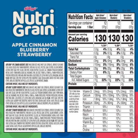 Nutri-Grain cereal bars are among the best-selling cereal bars on the market due to the quality ingredients and delicious flavor. Each bar contains dietary fiber, zero trans-fat, and zero cholesterol. Nutri-Grain soft-baked breakfast bars contain only 130 calories each–a tasty addition to any diet.