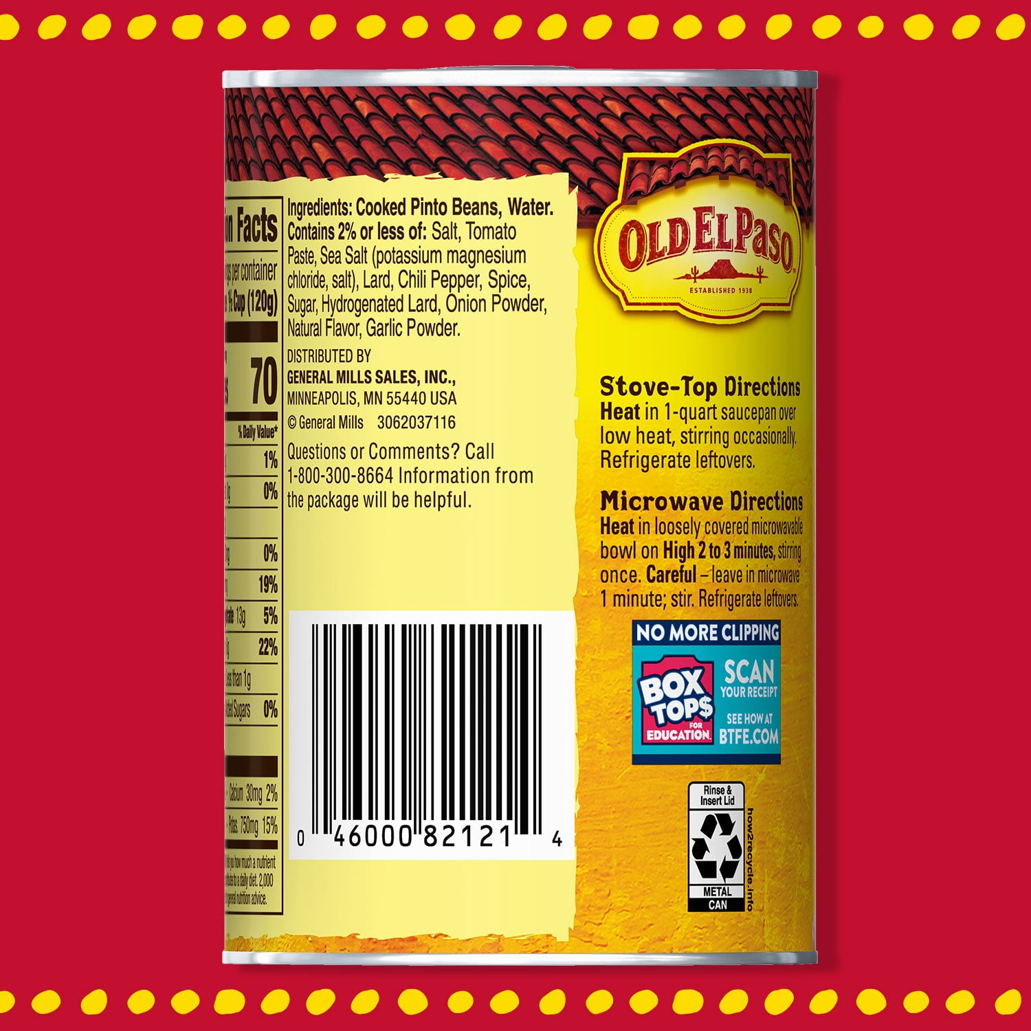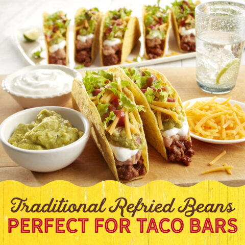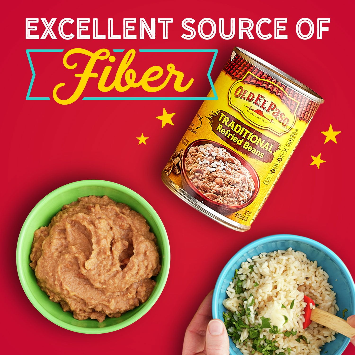 Old El Paso Traditional Refried Beans, 16oz Can. Warm up these ready-to-use refried beans and add them to tacos, burritos or any Mexican dish. These beans are made with just the right amount of spices, making them a perfect base for any Mexican meal or served as a tasty side dish. An excellent source of fiber that adds great taste and texture with minimal prep time. Anything Goes in Old El Paso so let your creativity and personal taste take centerplate.
