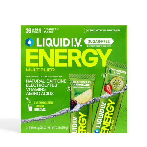 Liquid I.V. Energy Multiplier Sugar-Free Electrolyte Powder Variety Pack, Blackberry Lemonade and Strawberry Kiwi, 26 pk.
