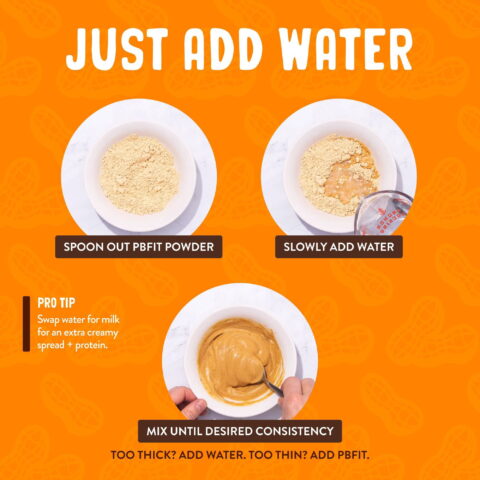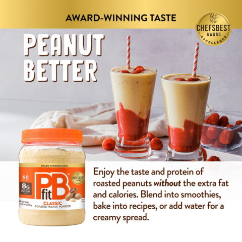 PBfit Peanut Butter Powder is a versatile addition to your kitchen. It simplifies recipes that call for peanut butter, such as smoothies and shakes, as it’s easy to measure and blend. PBfit can replace conventional peanut butter in almost any recipe. To create a spreadable consistency for sandwiches, simply add 1.5 tablespoons of water to every 2 tablespoons of powder. Enjoy the creamy texture and rich flavor of peanut butter without the extra calories or fat.