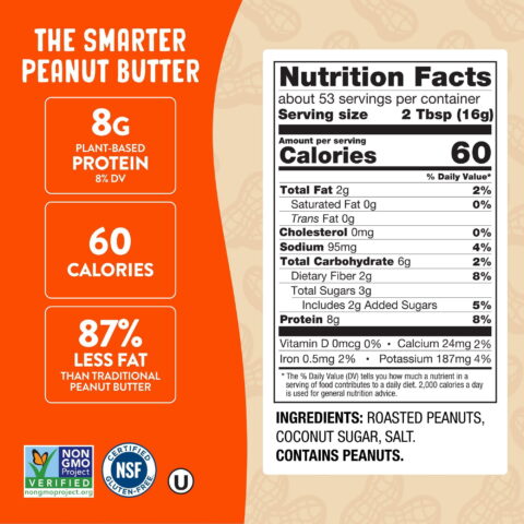 PBfit All-Natural Gluten-Free Peanut Butter Powder goes beyond expectations. It’s all-natural and contains just three simple ingredients: peanuts, coconut palm sugar, and salt. This non-GMO Project verified product is vegan and gluten-free, offering all the creamy, peanut-y goodness you love in a healthier format. A two-tablespoon serving only has 70 calories and 87% less fat than traditional peanut butter. Plus, it’s a great source of protein, packing 8 grams per serving.