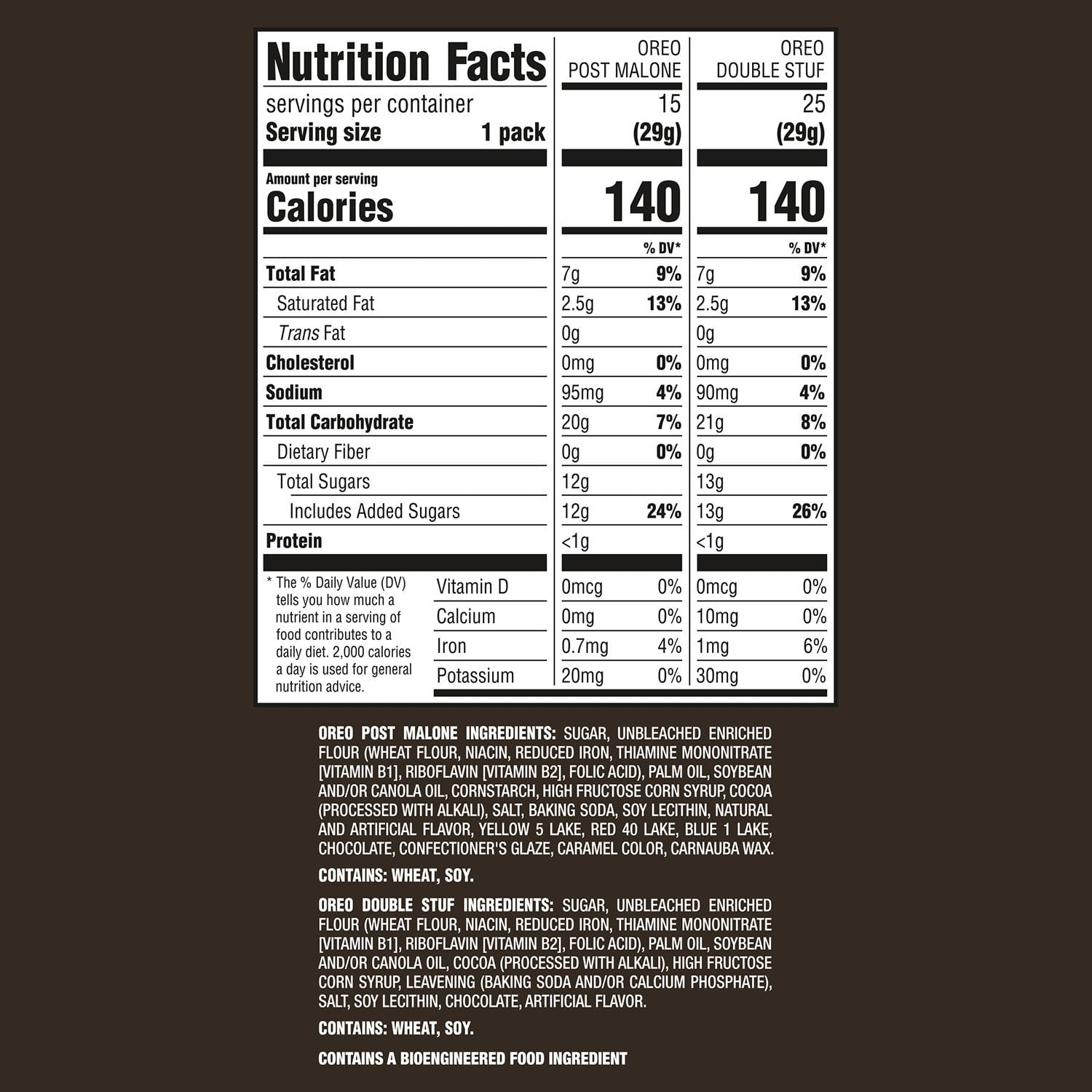 Enjoy OREO sandwich cookies on their own or with milk; the individually wrapped 2-cookie snack packs are great as after-lunch snacks, office snacks, and after-school snacks. These tasty, fun snacks make wonderful birthday treats or party snacks. Experience Post Malone’s Taste Twist OREO Cookies and scan the pack’s QR code to unlock your own Taste Twist cookie. With this bulk cookies box of 40 certified kosher OREO cookie snack packs, you’ll be ready for any snacking occasion.