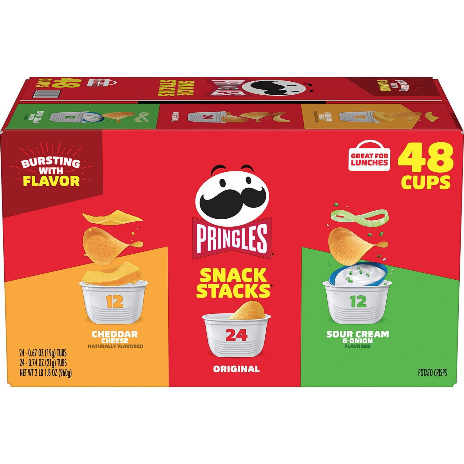 Our Pringles Snack Pack features the famous stackable potato chip with a delicious, salty crunch in each and every bite. This Pringles Snack Stacks Variety Pack comes with three different flavors so that everyone can pick their favorite.